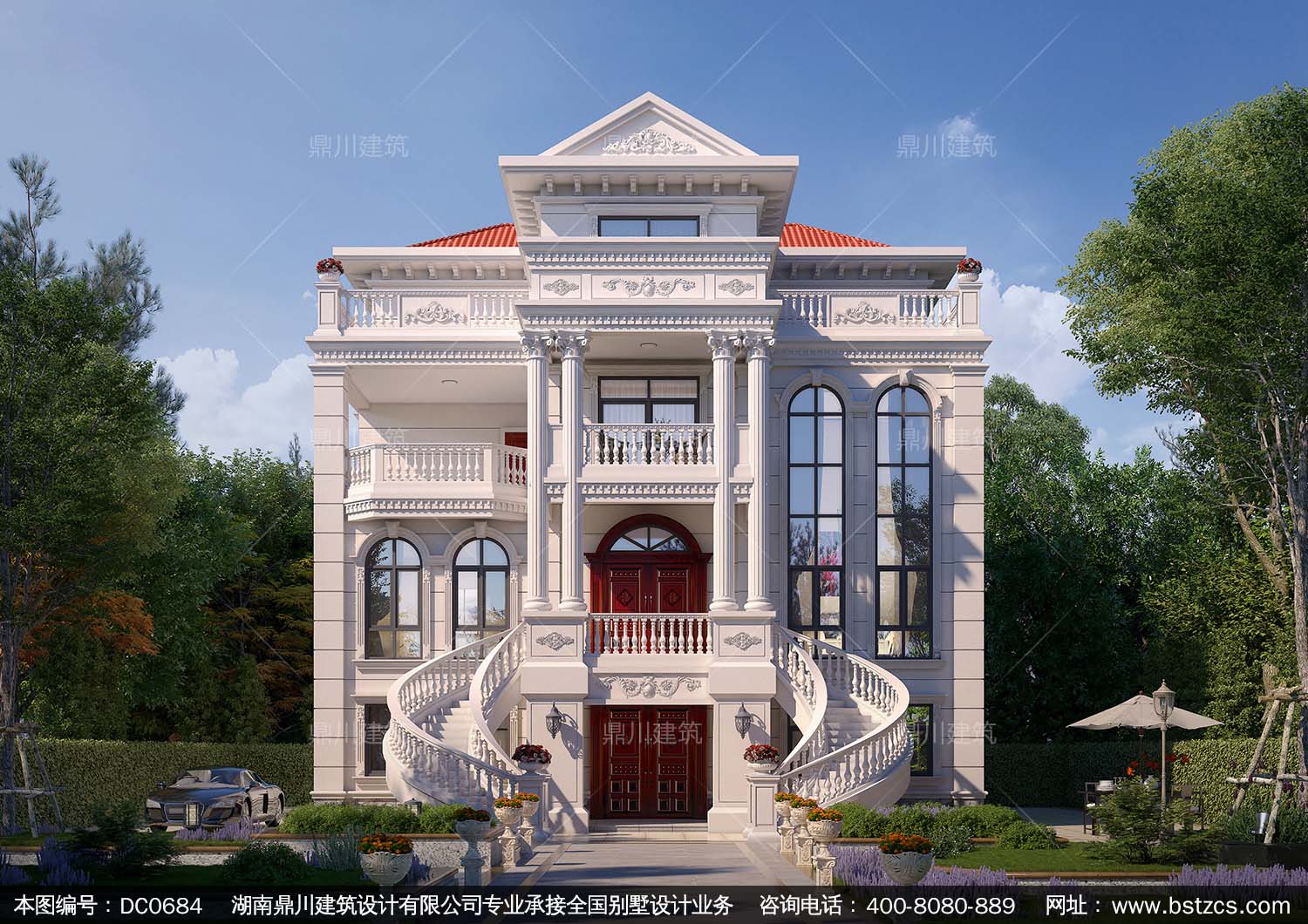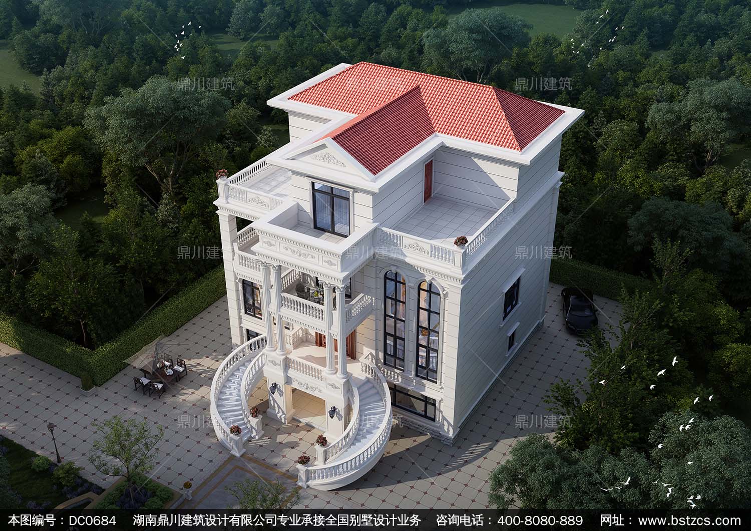 四層帶電梯歐式別墅效果圖及施工圖紙_新農(nóng)村四層復(fù)式帶車庫自建別墅設(shè)計(jì),鼎川建筑