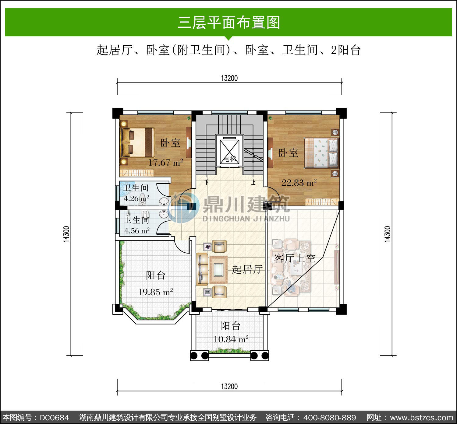 | 三 層: | 起居廳、臥室(附衛(wèi)生間)、臥室、衛(wèi)生間、2陽臺 | |||