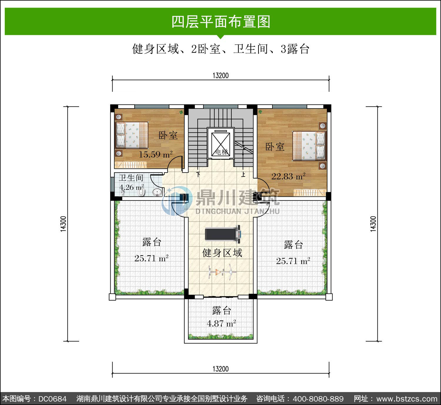 | 四 層: | 健身區(qū)域、2臥室、衛(wèi)生間、3露臺 | |||