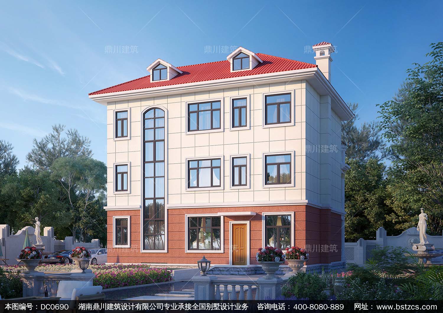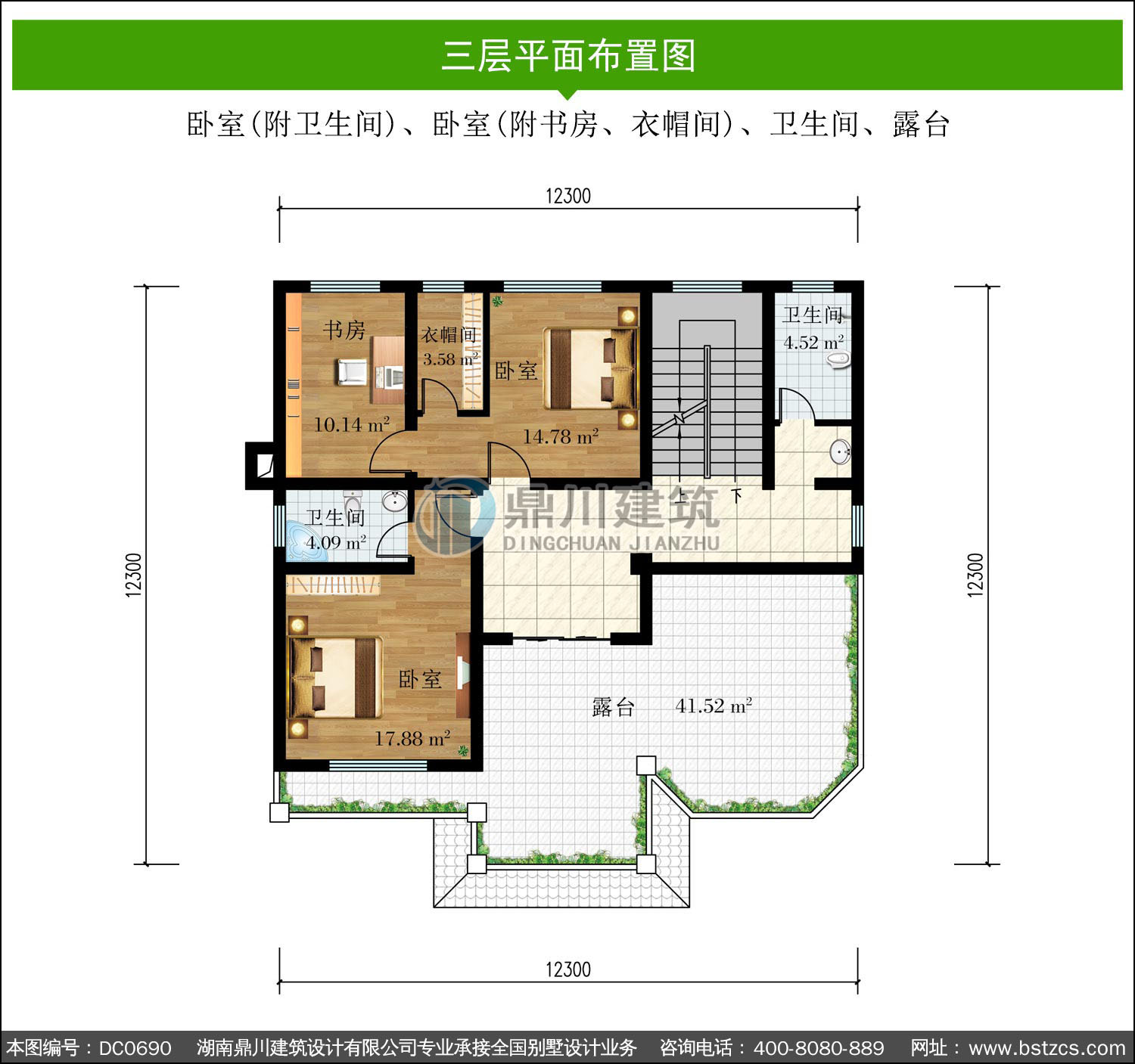 新農(nóng)村復(fù)式三層帶露臺別墅全套施工圖紙及外觀效果圖_鄉(xiāng)村三層自建房屋設(shè)計(jì),鼎川別墅圖紙