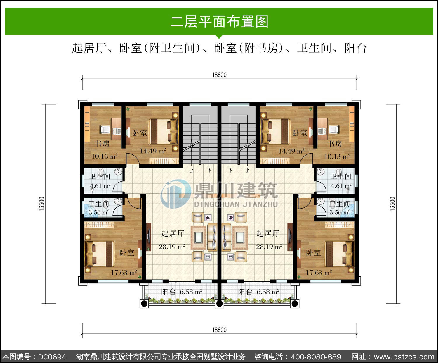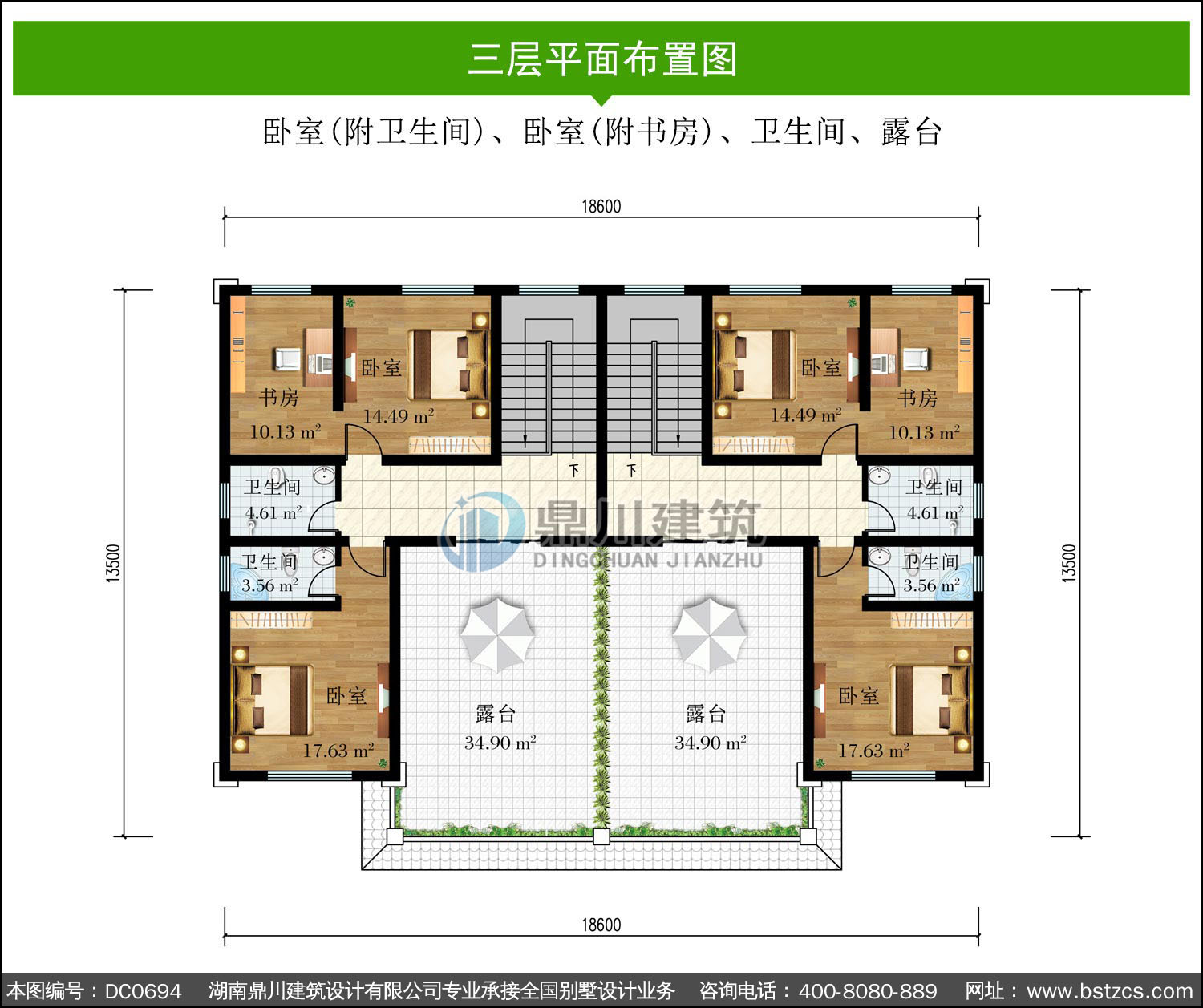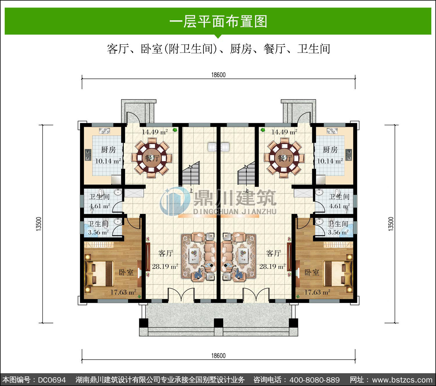 三層實用型雙拼別墅效果圖及施工圖_鼎川建筑,鼎川別墅圖紙