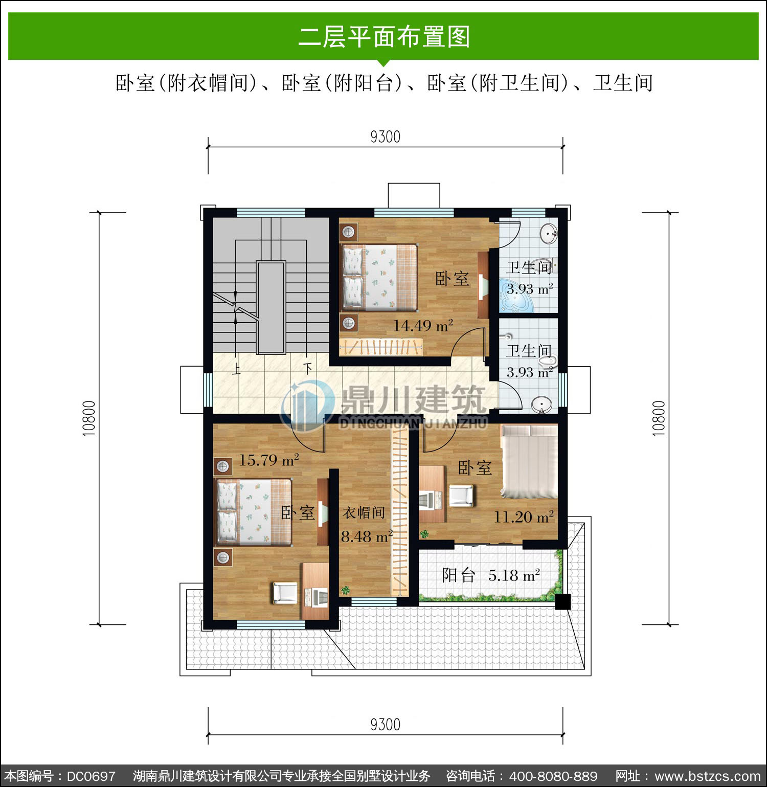新農村二層實用帶陽臺小別墅效果圖及施工圖紙_鄉村兩層小戶型自建房設計,鼎川建筑