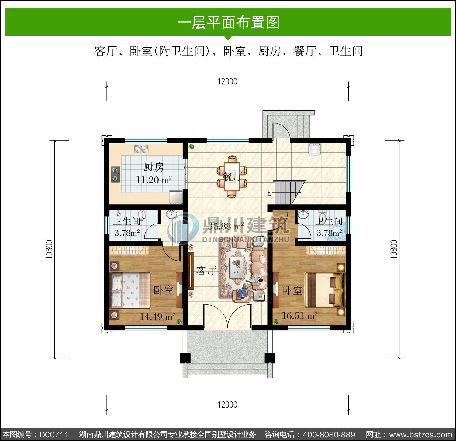 | 編號: DC0711 | 層數: 二層 | 結構形式: 磚混結構 | 主體造價: 27-32萬 |