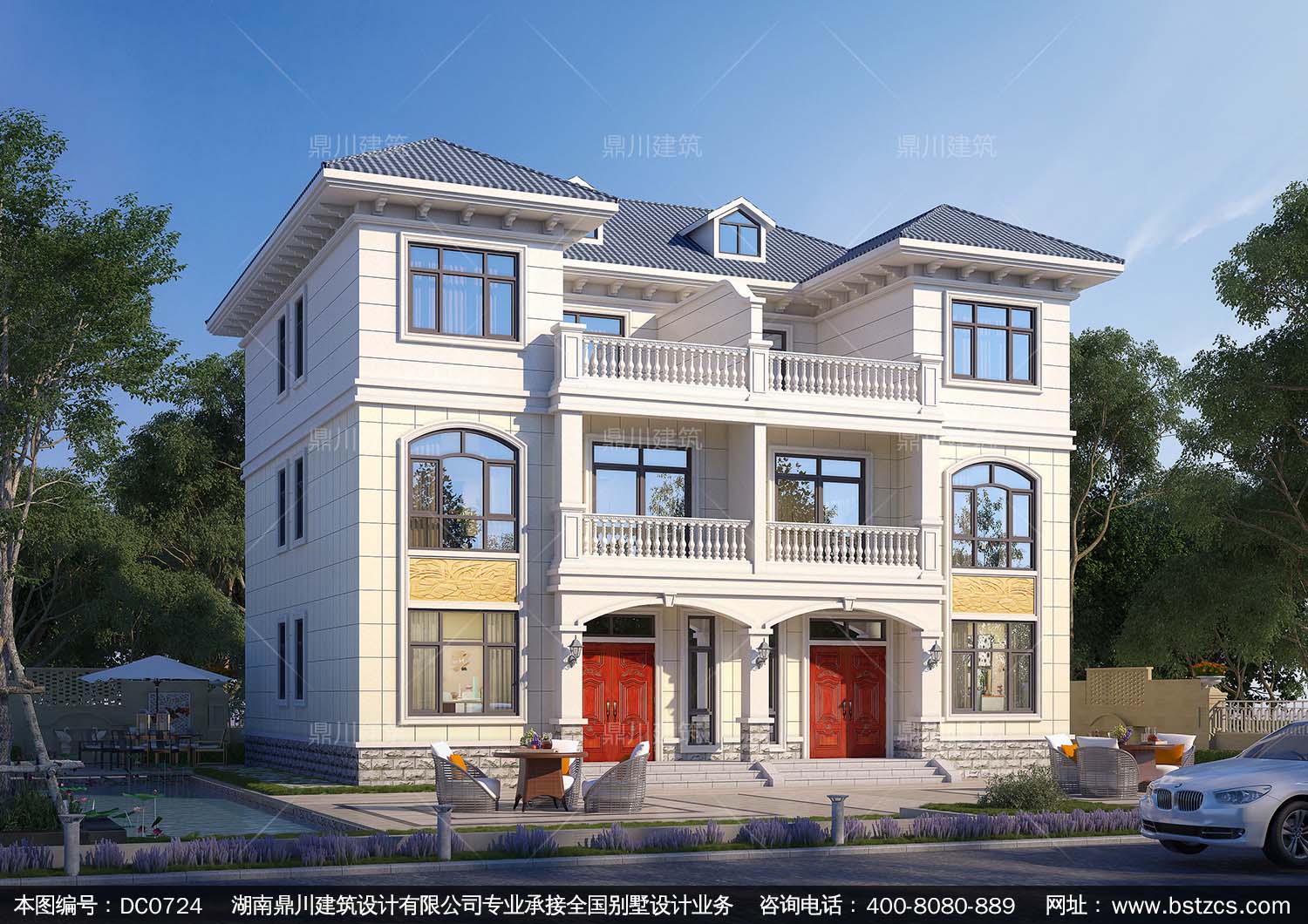 歐式三層簡約型雙拼別墅設計圖紙_農(nóng)村三層雙拼別墅設計,鼎川建