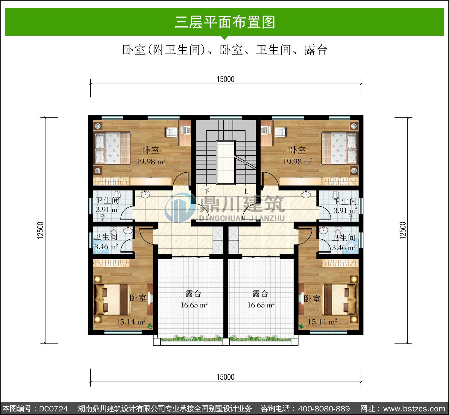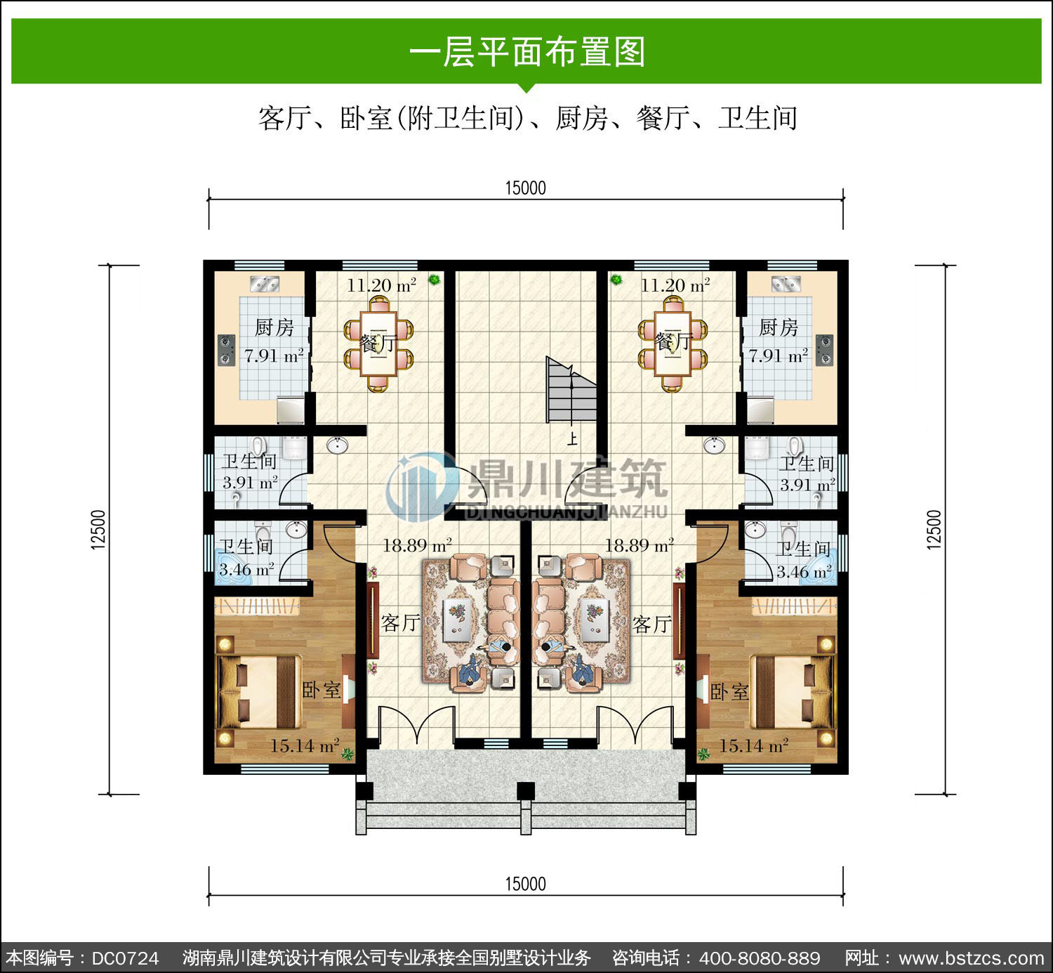 三層共堂屋雙拼別墅設計圖紙_農(nóng)村雙拼別墅圖紙,鼎川建筑