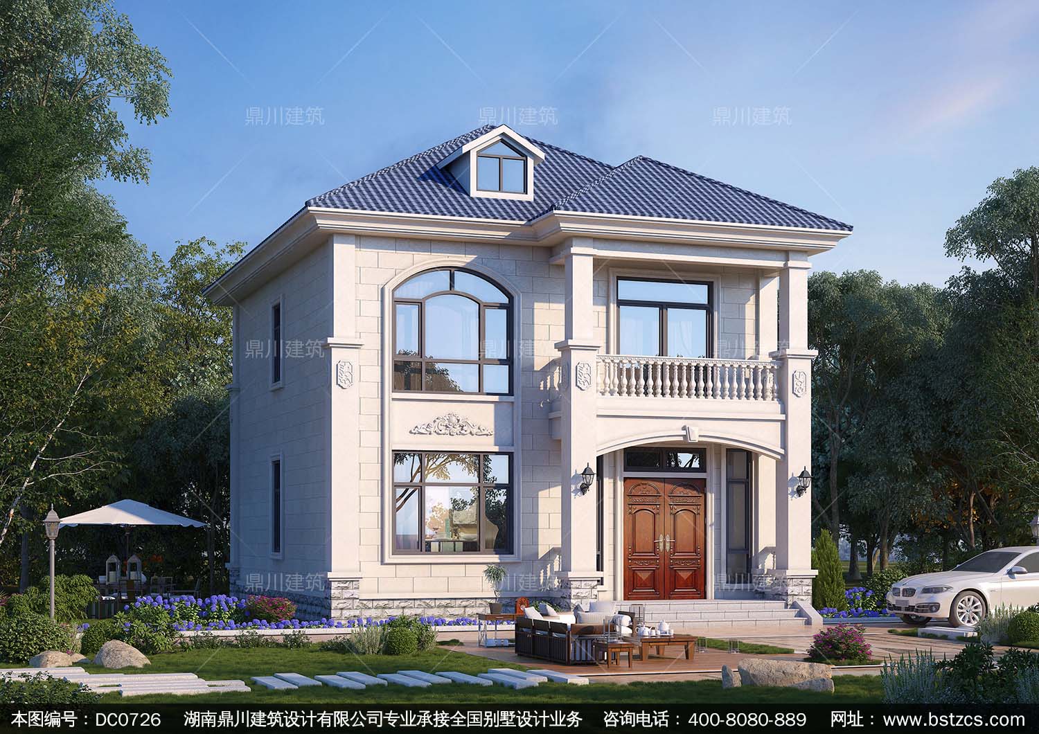 歐式二層帶露臺小別墅設計圖紙_農村實用自建房屋設計圖,鼎川建