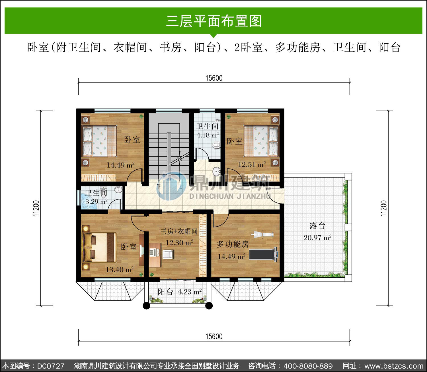 | 三 層: | 臥室(附衛(wèi)生間、衣帽間、書房、陽臺)、2臥室、多功能房、衛(wèi)生間、陽臺 | |||
