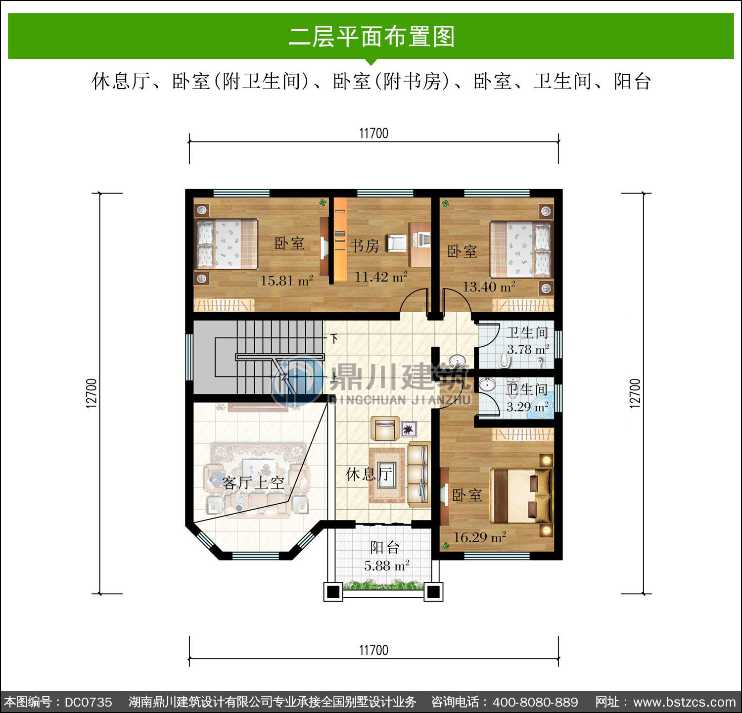 | 二 層: | 休息廳、臥室(附衛(wèi)生間)、臥室(附書房)、臥室、衛(wèi)生間、陽臺(tái) | |||