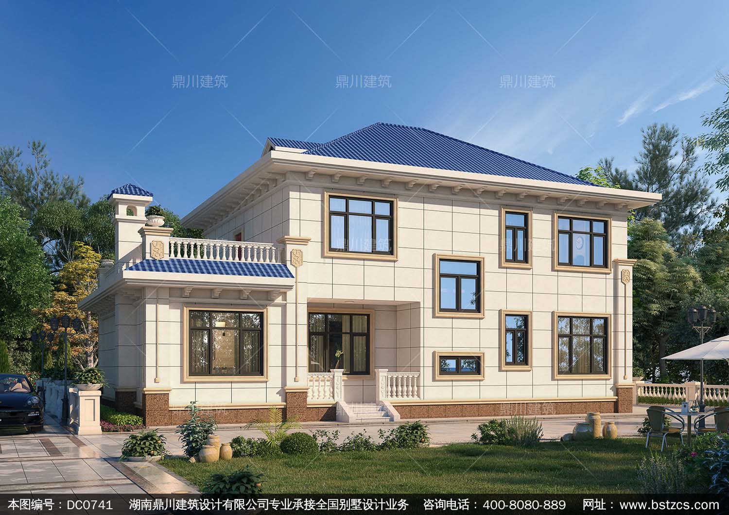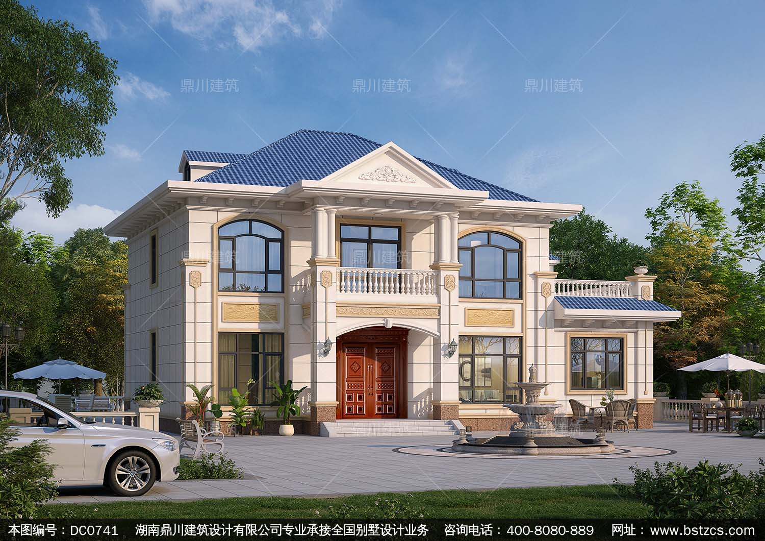 簡歐二層帶陽臺別墅效果圖及施工圖_農村自建房屋設計圖紙,鼎川