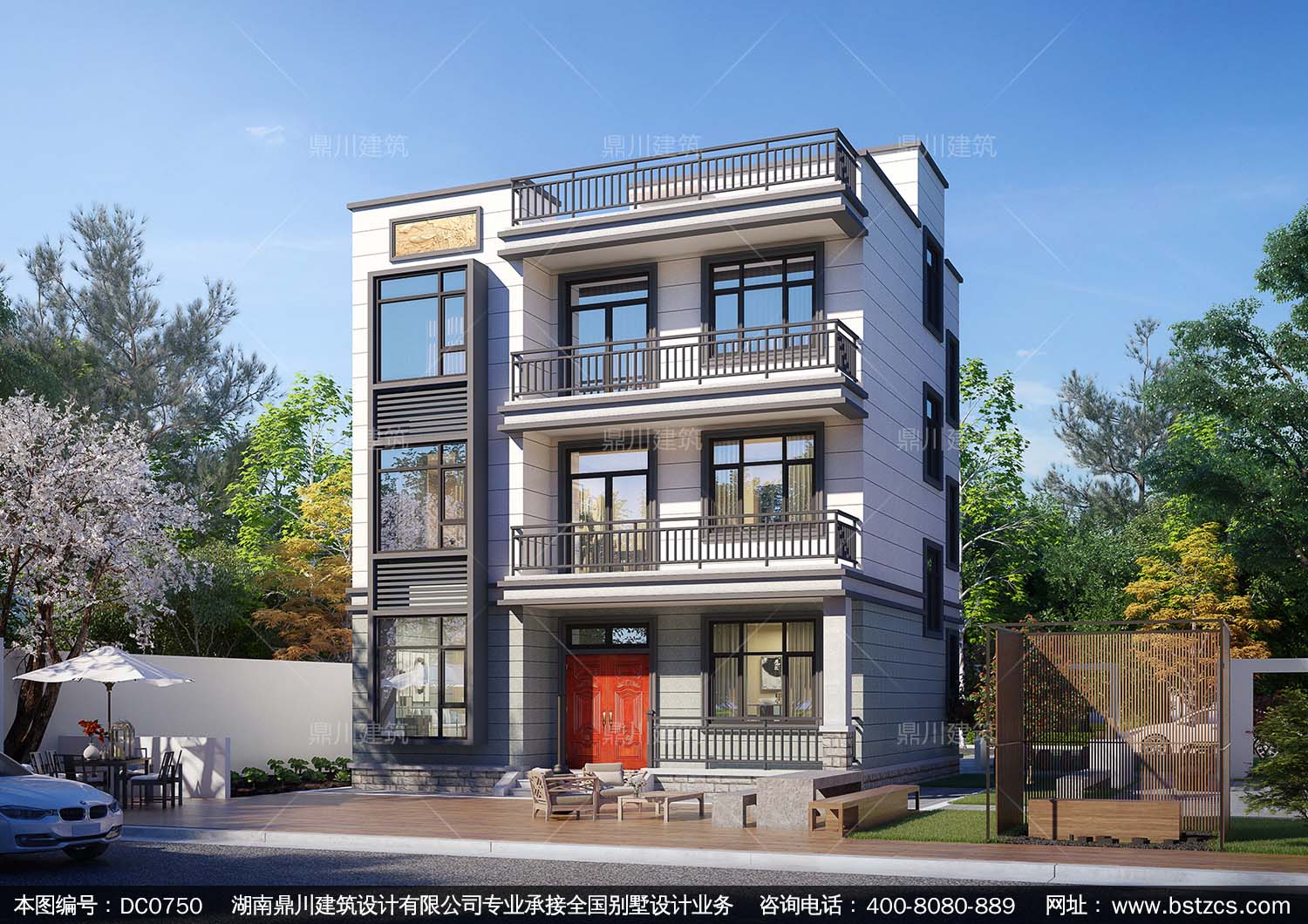新中式三層帶露臺別墅圖紙效果圖_農村自建別墅設計,鼎川建筑