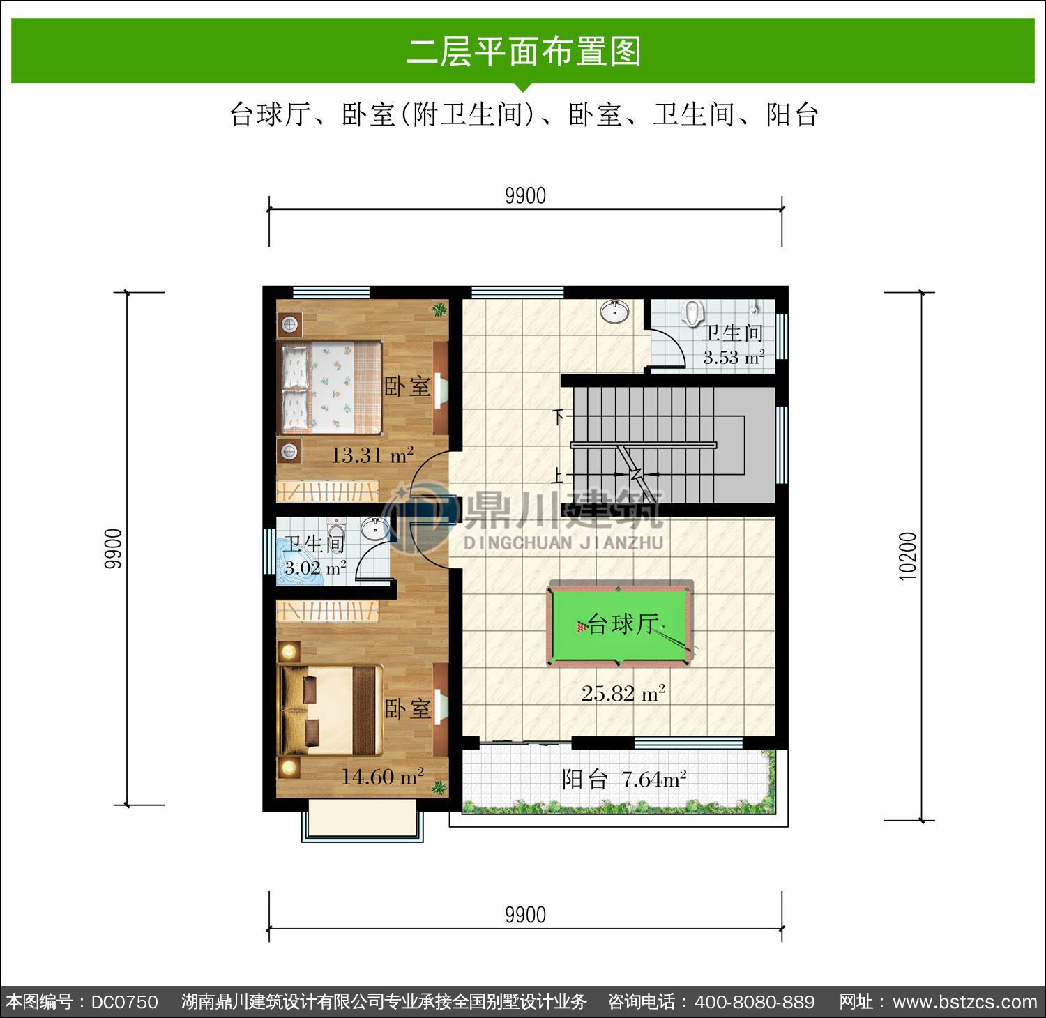 | 二 層: | 臺球廳、臥室(附衛生間)、臥室、衛生間、陽臺 | |||