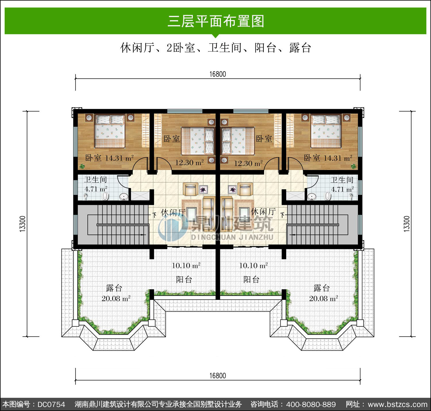 | 三 層: | 休閑廳、2臥室、衛(wèi)生間、陽(yáng)臺(tái)、露臺(tái) | |||
