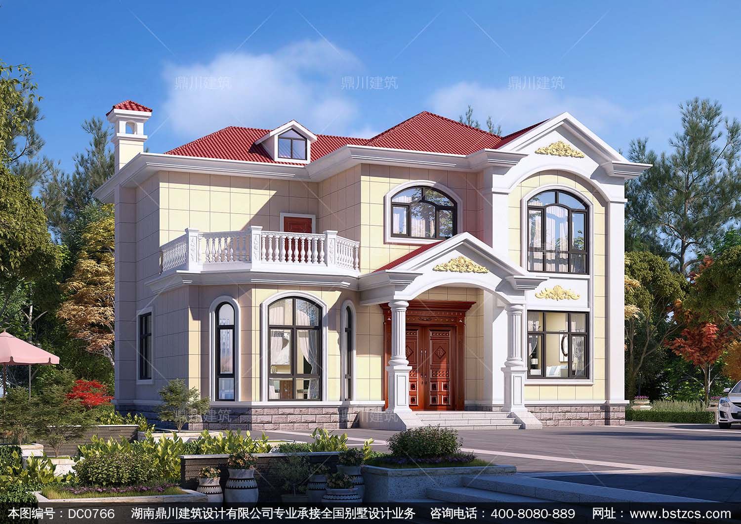 二層歐式帶陽臺小別墅效果圖_農村自建房設計圖紙,鼎川建筑