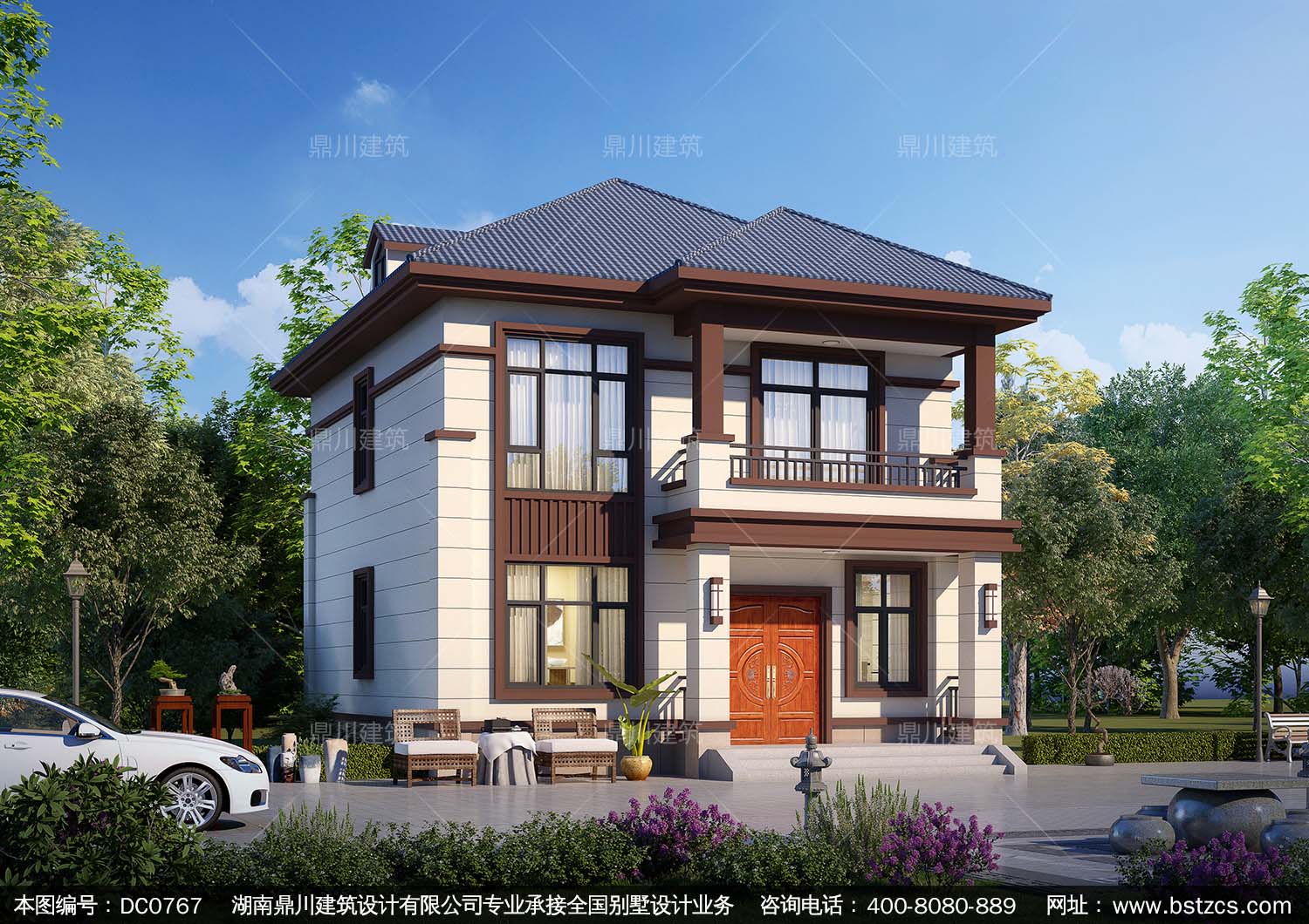 新中式二層小別墅施工圖紙_農村自建房屋設計效果圖,鼎川建筑