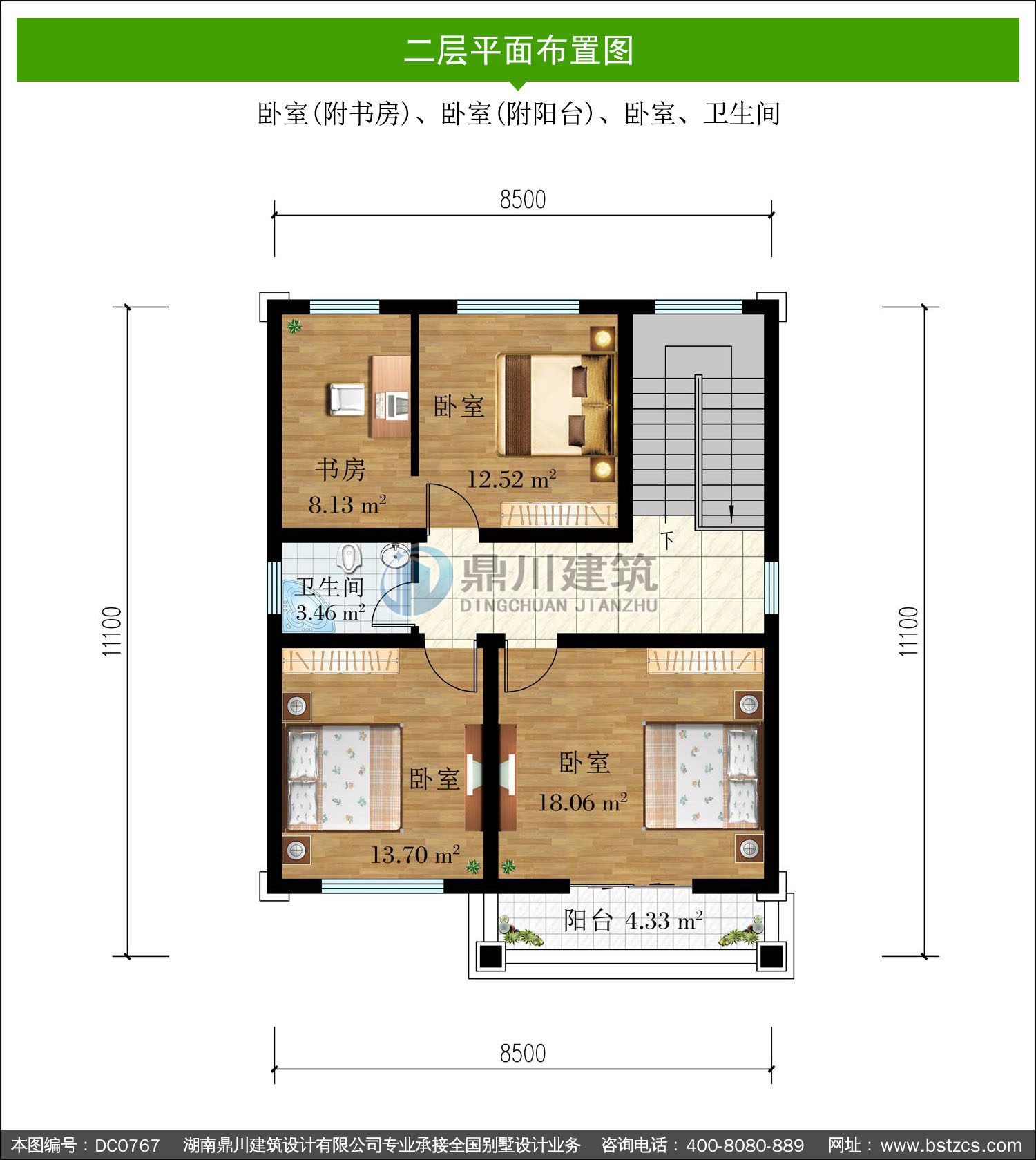 | 二 層: | 臥室(附書房)、臥室(附陽臺)、臥室、衛(wèi)生間 | |||
