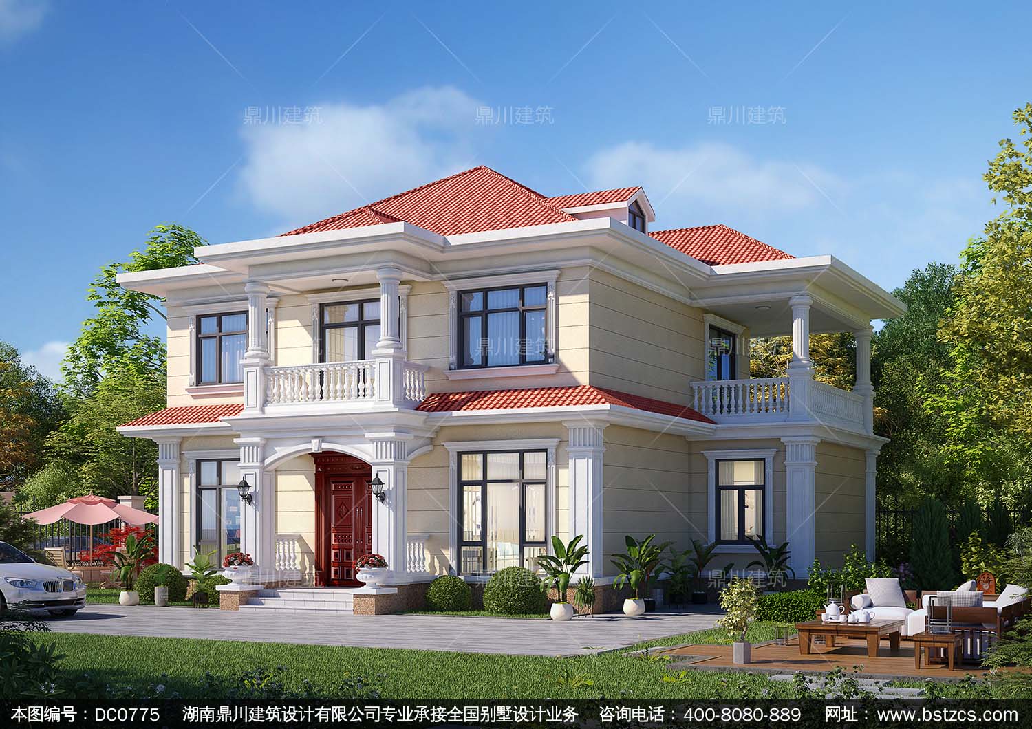 歐式二層帶陽臺別墅圖紙及效果圖_新農村自建房設計,鼎川建筑