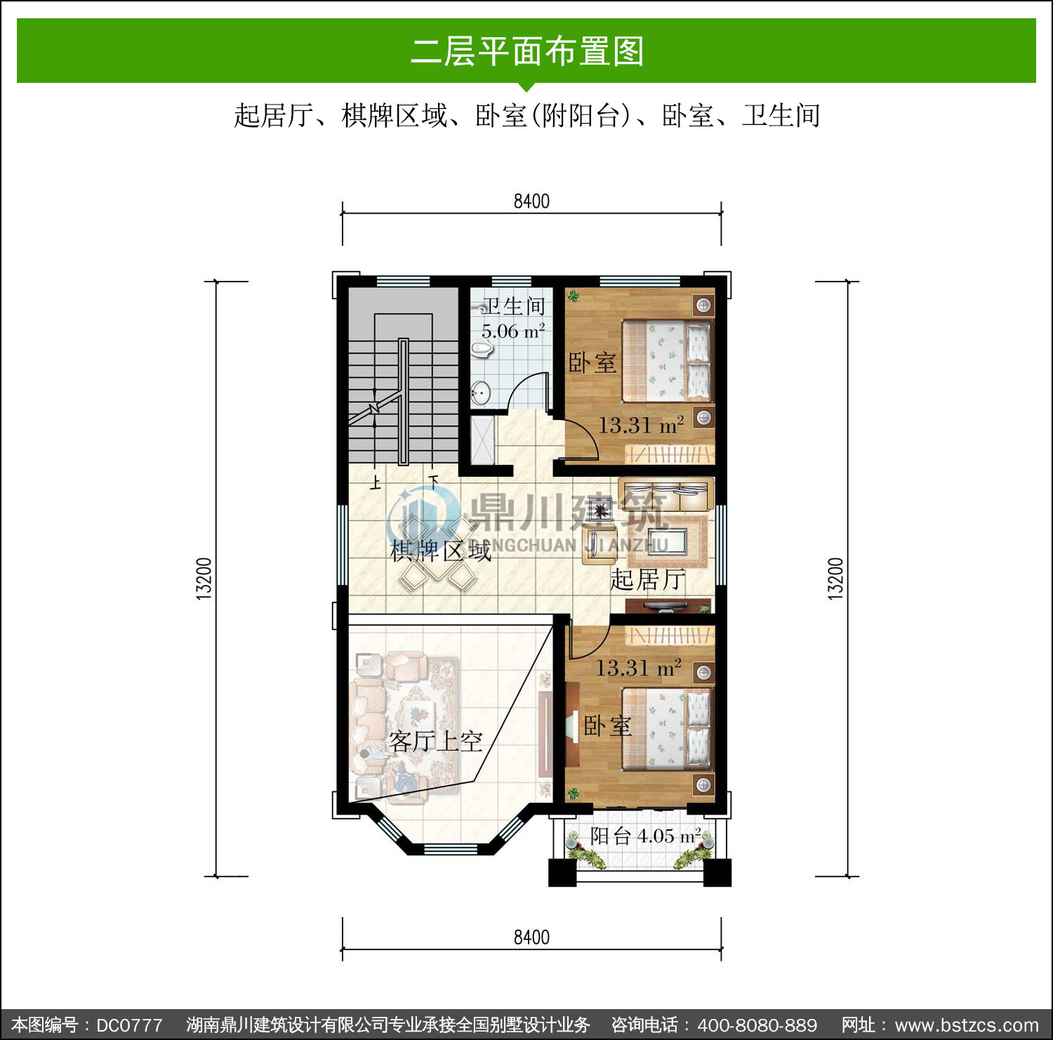 | 二 層: | 起居廳、棋牌區(qū)域、臥室(附陽臺)、臥室、衛(wèi)生間 | |||