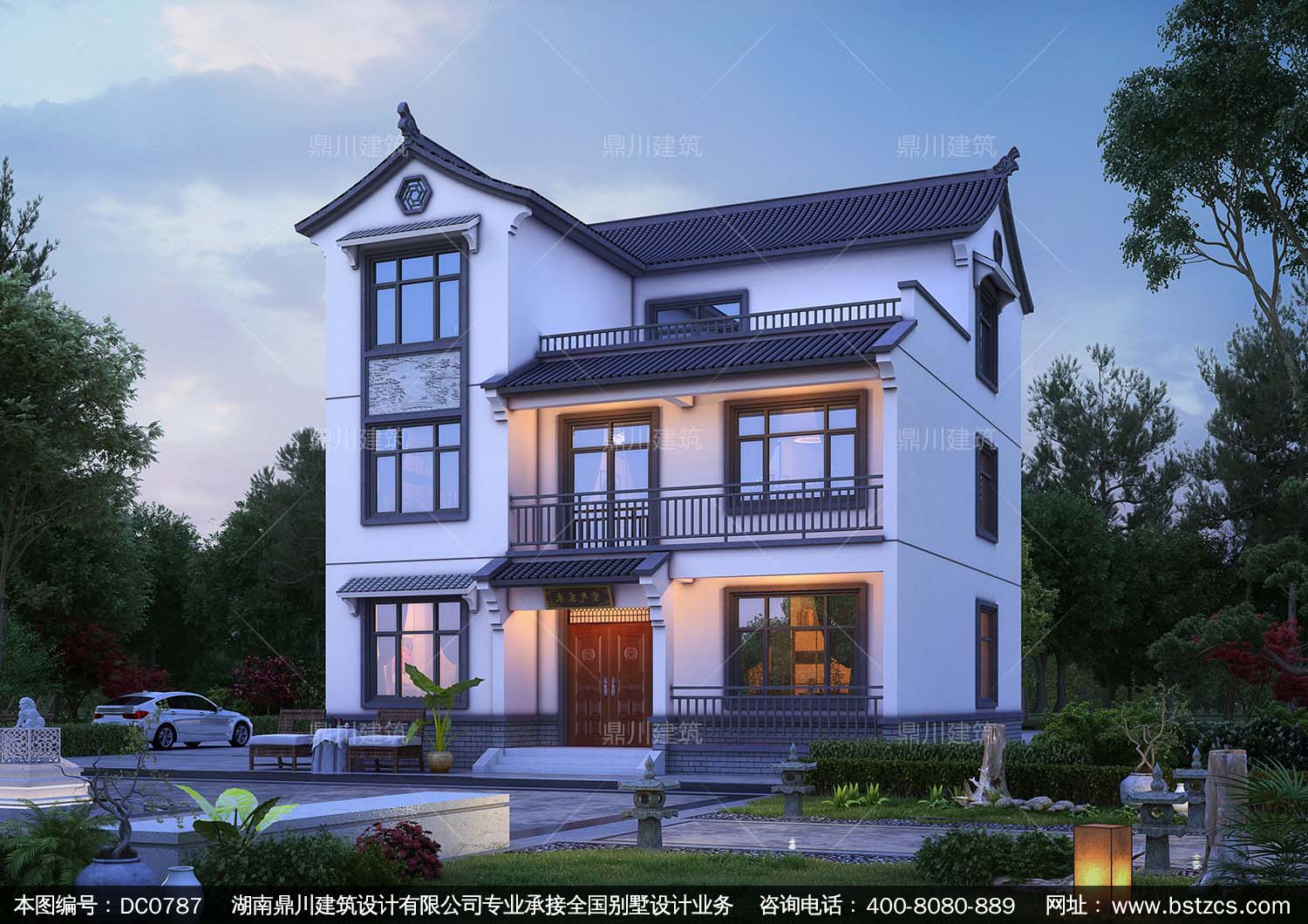 三層中式風格別墅效果圖及施工圖_新農村別墅設計圖紙,鼎川建筑