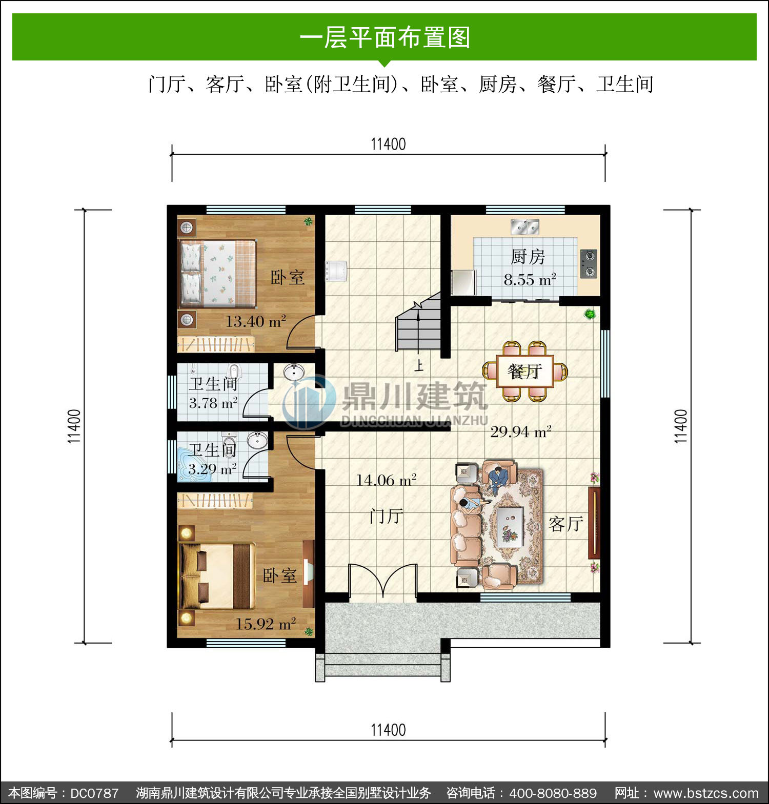 | 開間: 11.4米 | 進深: 11.4米 | 占地面積: 135.49平方米 | 建筑面積: 366.64平方米 |