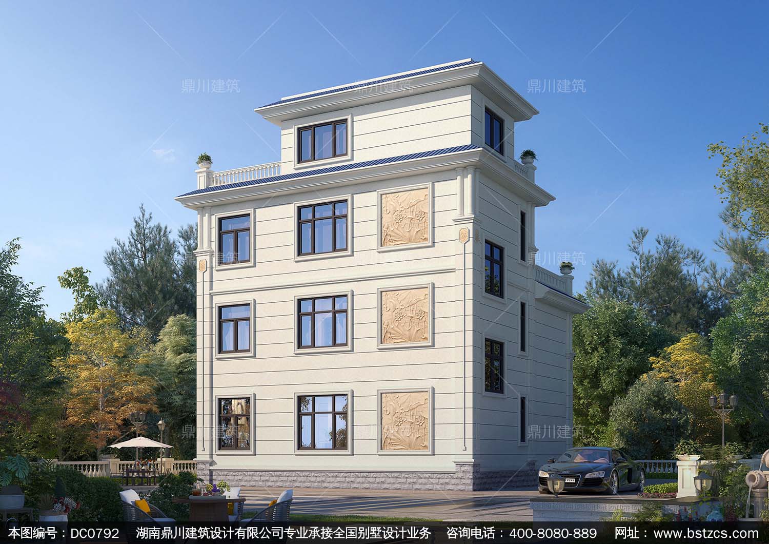 歐式三層帶露臺別墅施工圖紙及效果圖_新農村自建房設計,鼎川建
