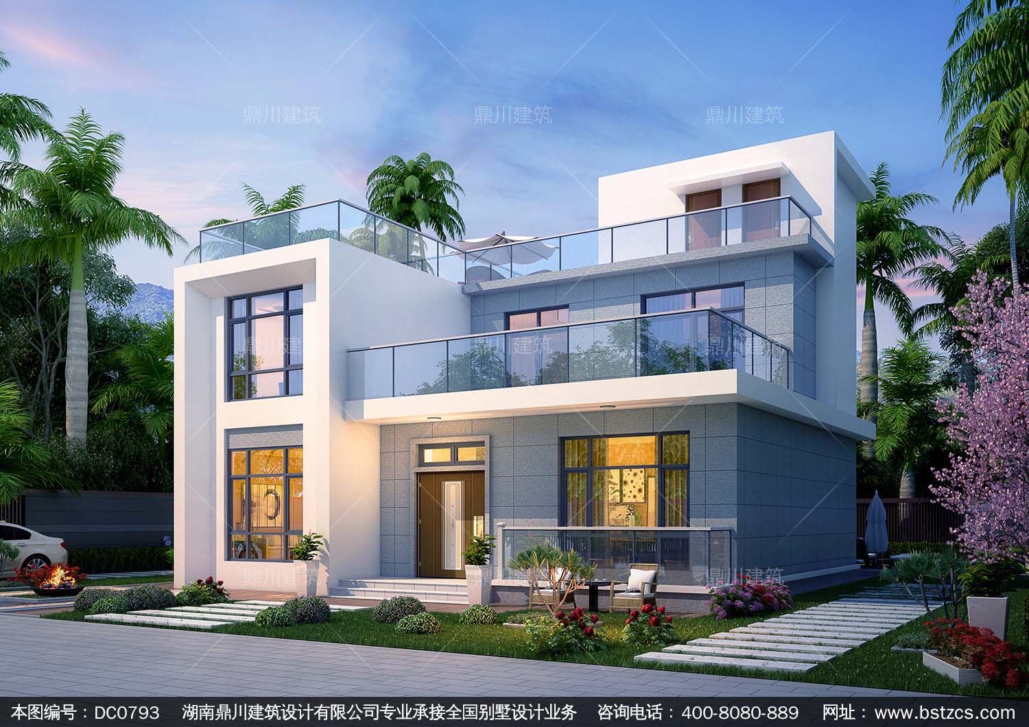 現代二層平屋頂別墅施工圖及效果圖_新農村自建別墅設計,鼎川建筑