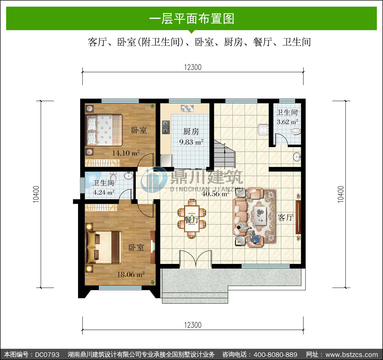 | 一 層: | 客廳、臥室(附衛生間)、臥室、廚房、餐廳、衛生間 | |||