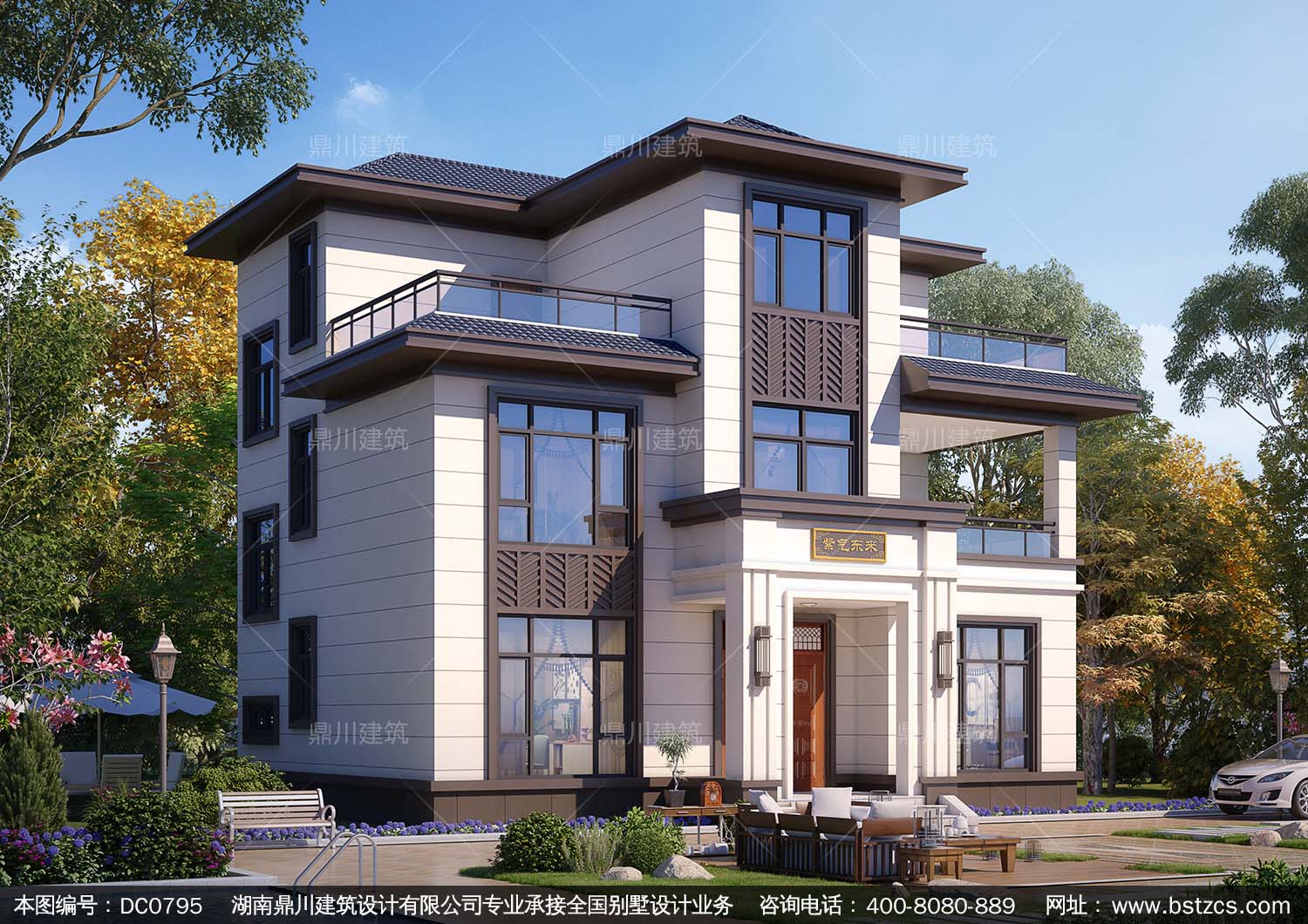 漂亮的三層新中式別墅設計圖紙及效果圖_農村別墅設計,鼎川建筑