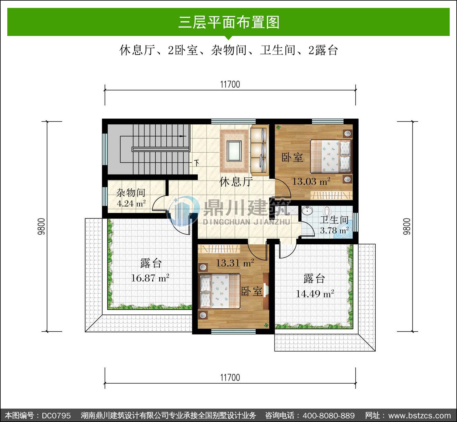 新中式三層帶露臺復式別墅效果及全套施工圖紙_農村三層自建別墅