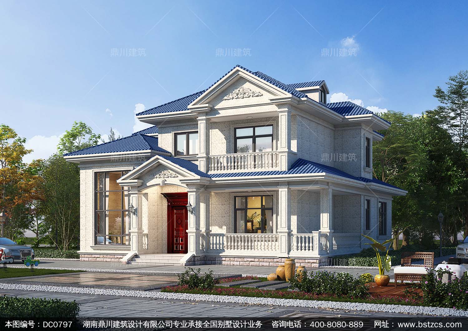 二層歐式帶陽臺小別墅效果圖_農村自建房設計圖紙,鼎川建筑