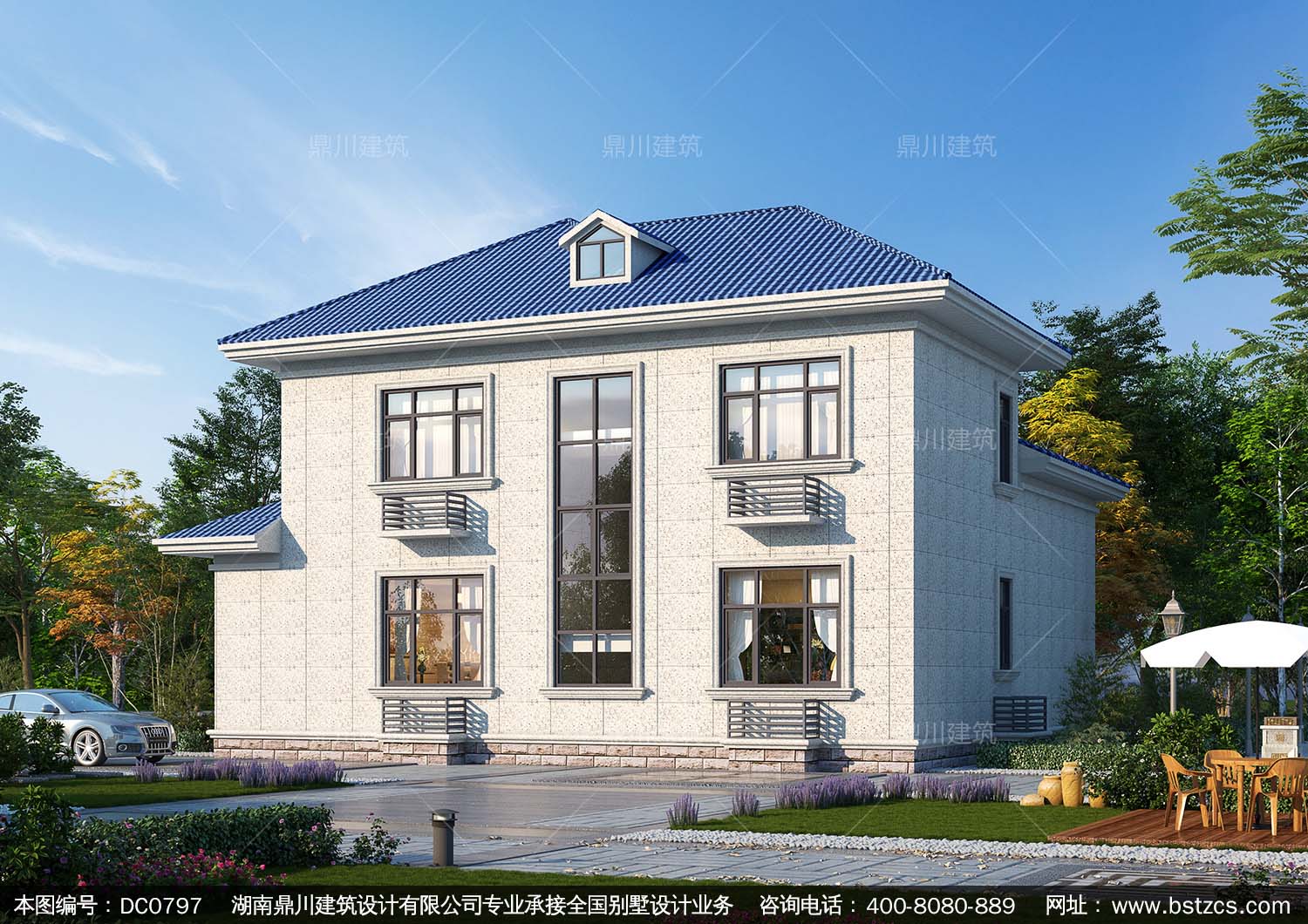 歐式二層帶露臺別墅全套圖紙及效果圖_新農村自建房子設計,鼎川