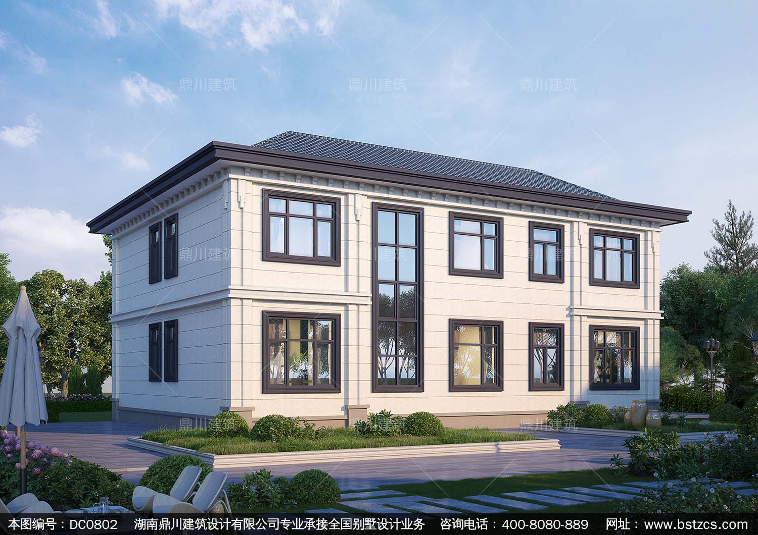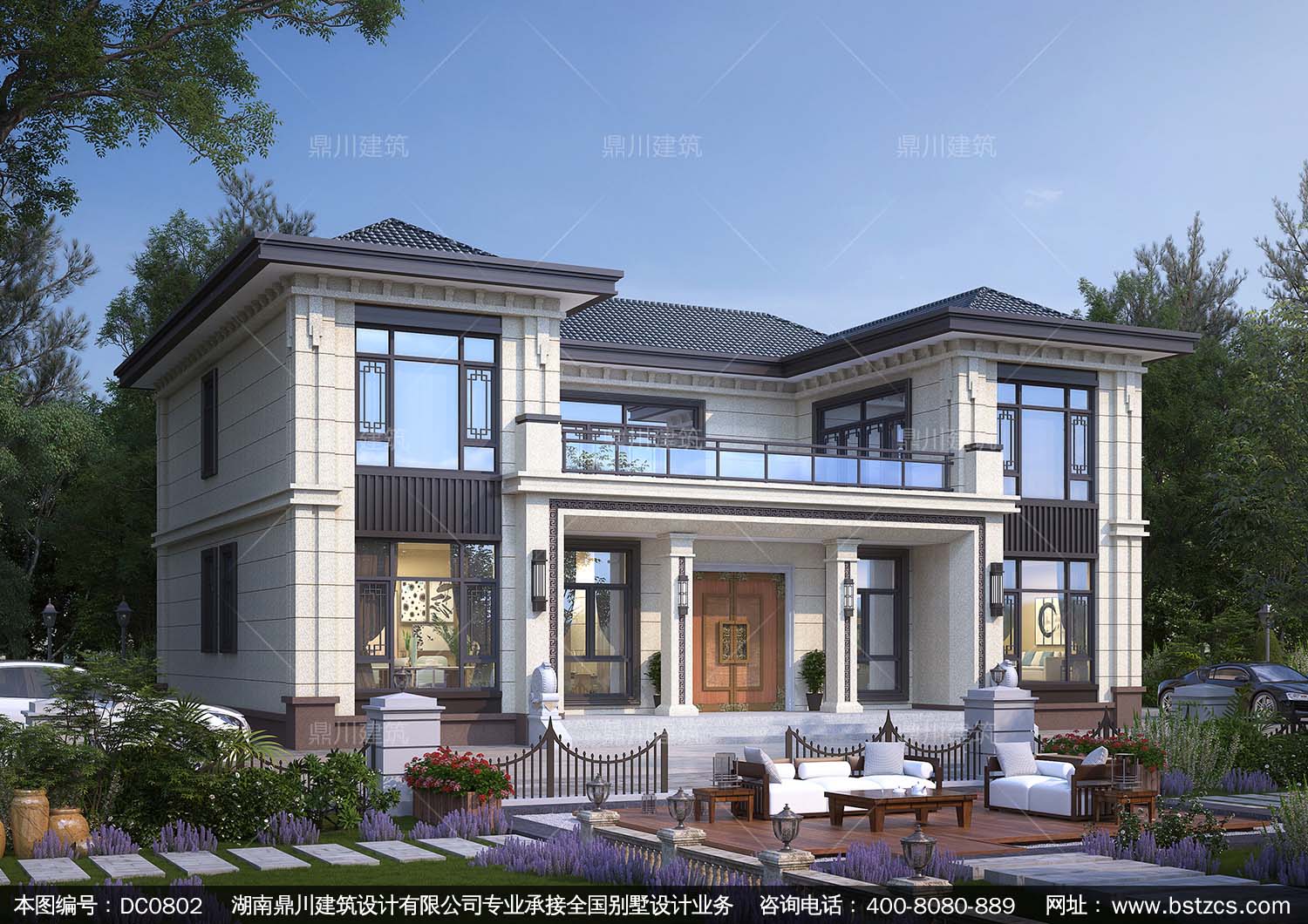 大氣新中式帶露臺(tái)別墅施工圖紙及效果圖_農(nóng)村二層自建房設(shè)計(jì),鼎川建筑