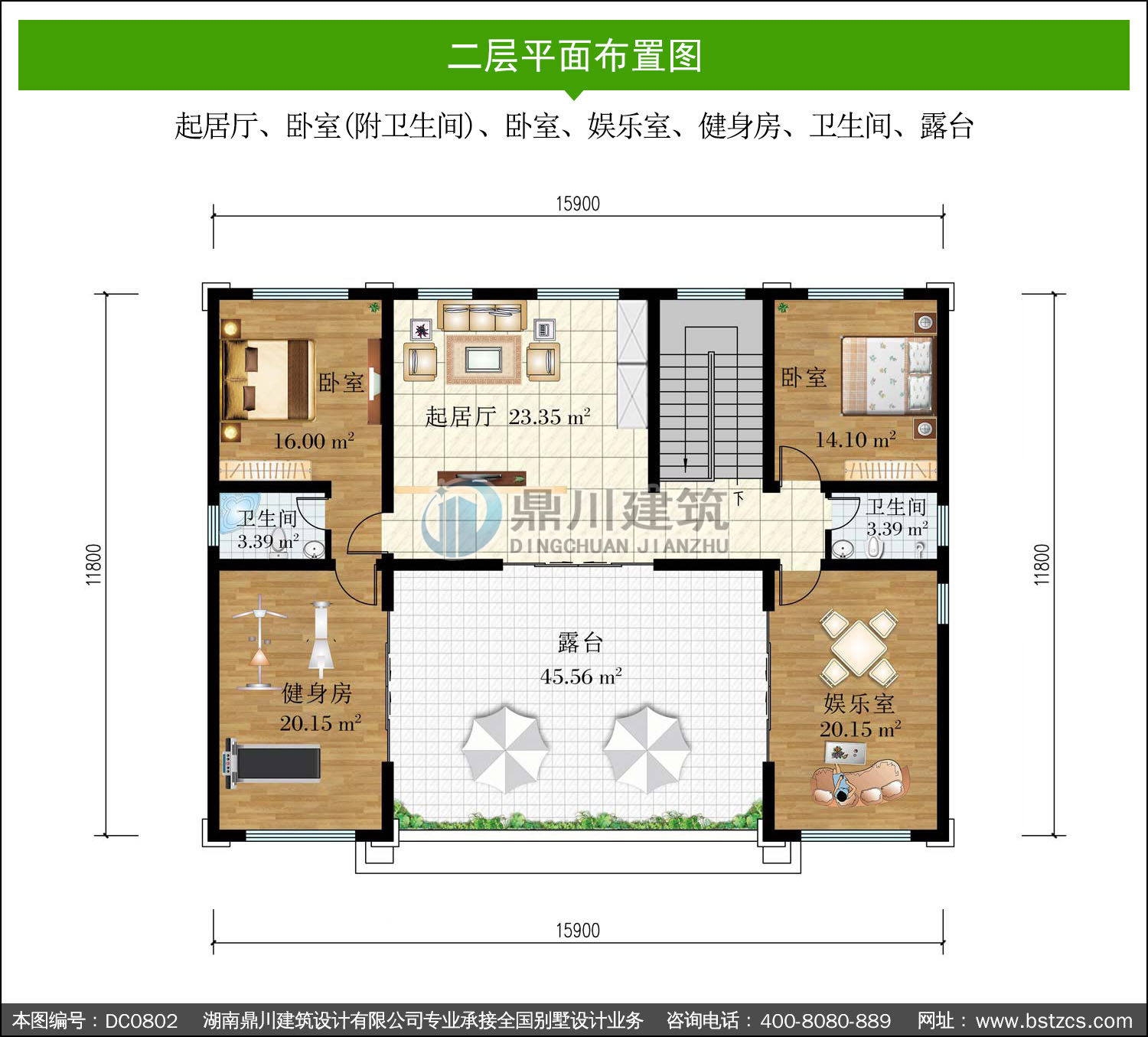 | 二 層: | 起居廳、臥室(附衛(wèi)生間)、臥室、娛樂室、健身房、衛(wèi)生間、露臺(tái) | |||