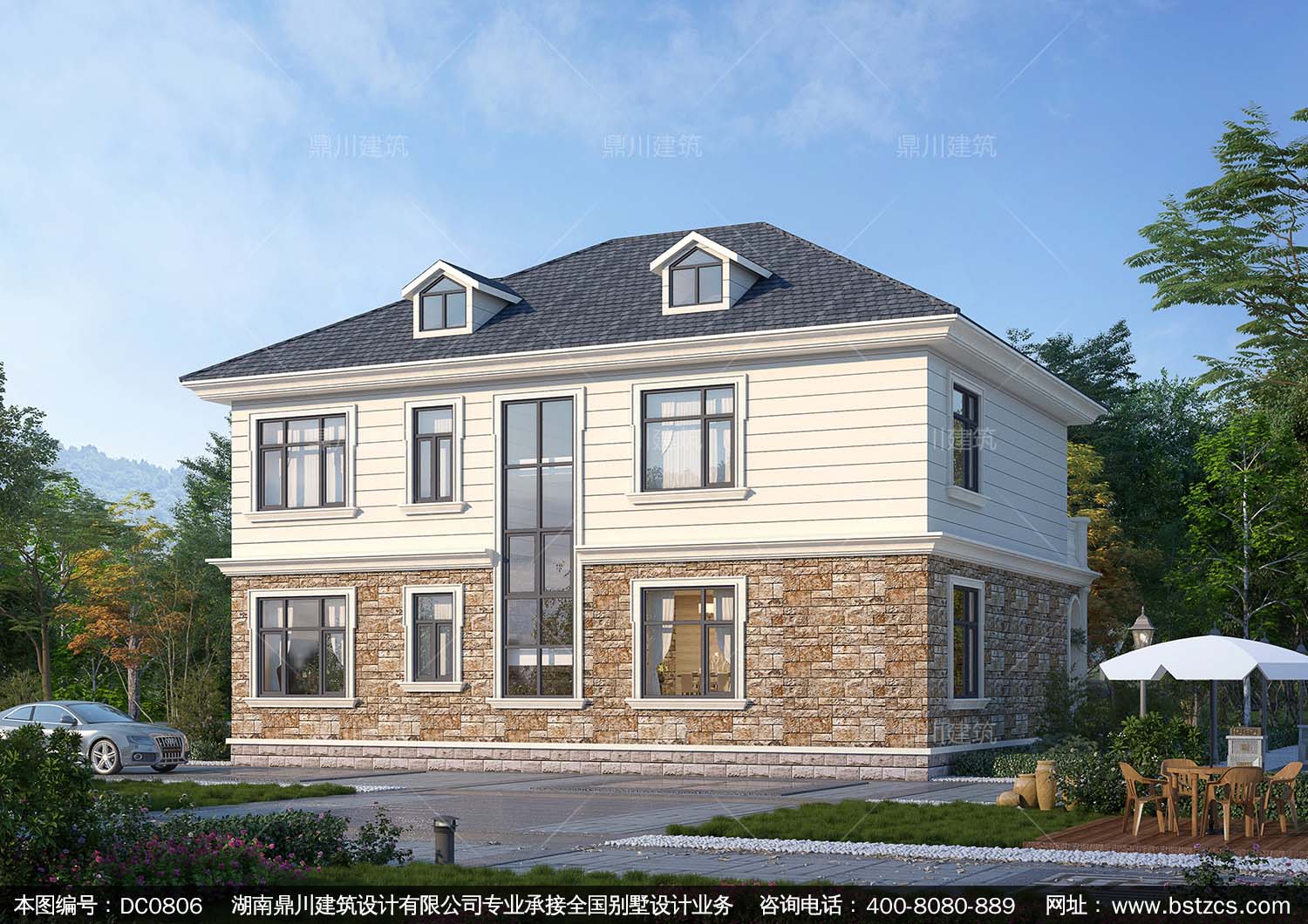 二層帶露臺(tái)別墅施工圖紙及效果圖_農(nóng)村自建房屋設(shè)計(jì),鼎川建筑