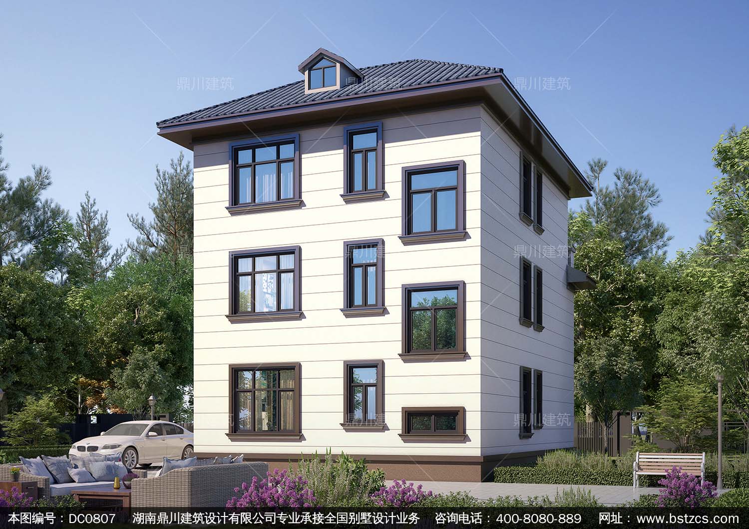新中式三層帶露臺別墅圖紙效果圖_農村自建別墅設計,鼎川建筑