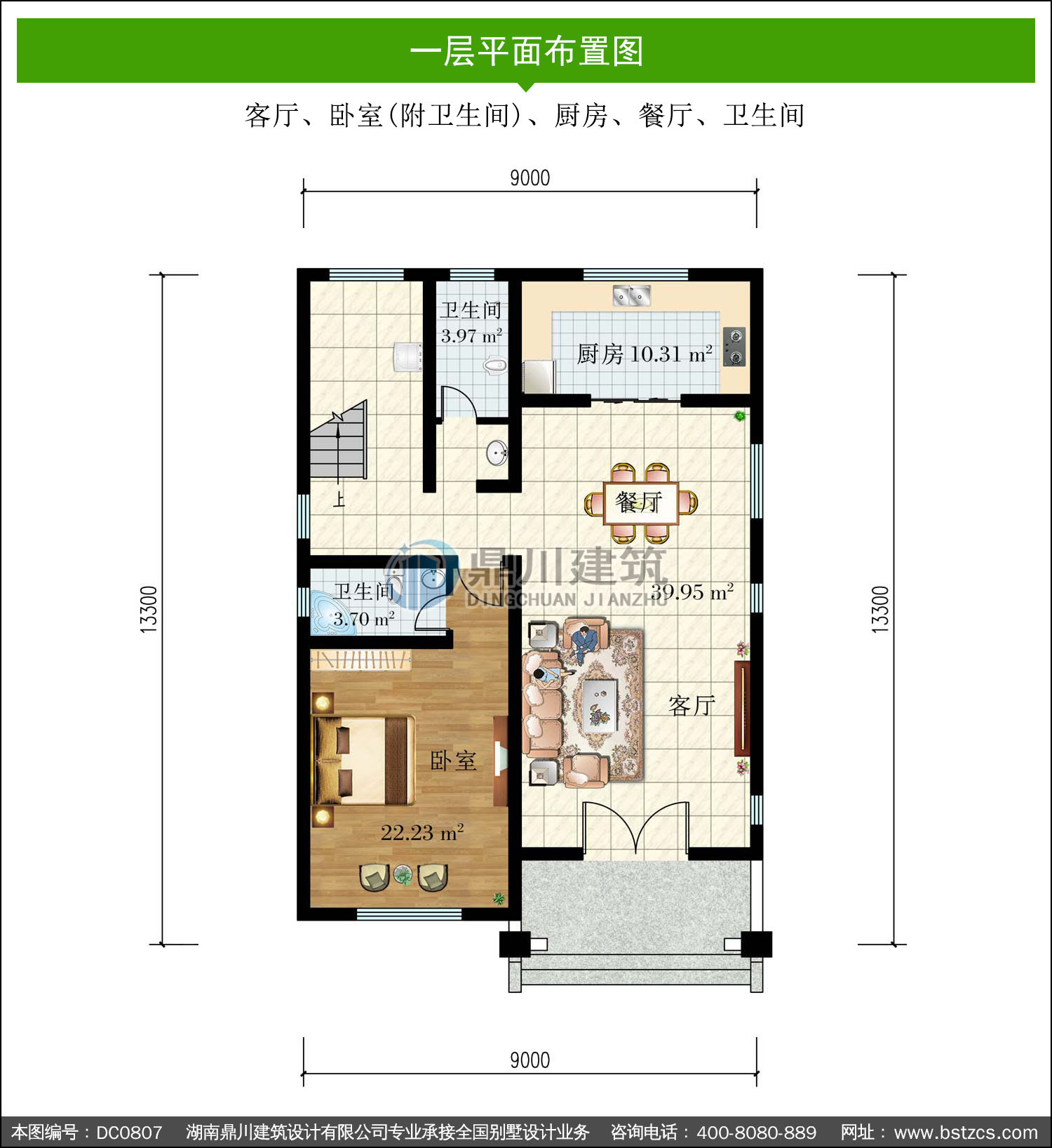 | 一 層: | 客廳、臥室(附衛生間)、廚房、餐廳、衛生間 | |||