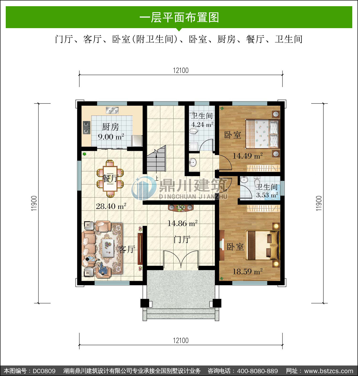 | 開間: 12.1米 | 進深: 11.9米 | 占地面積: 140.81平方米 | 建筑面積: 303.33平方米 |