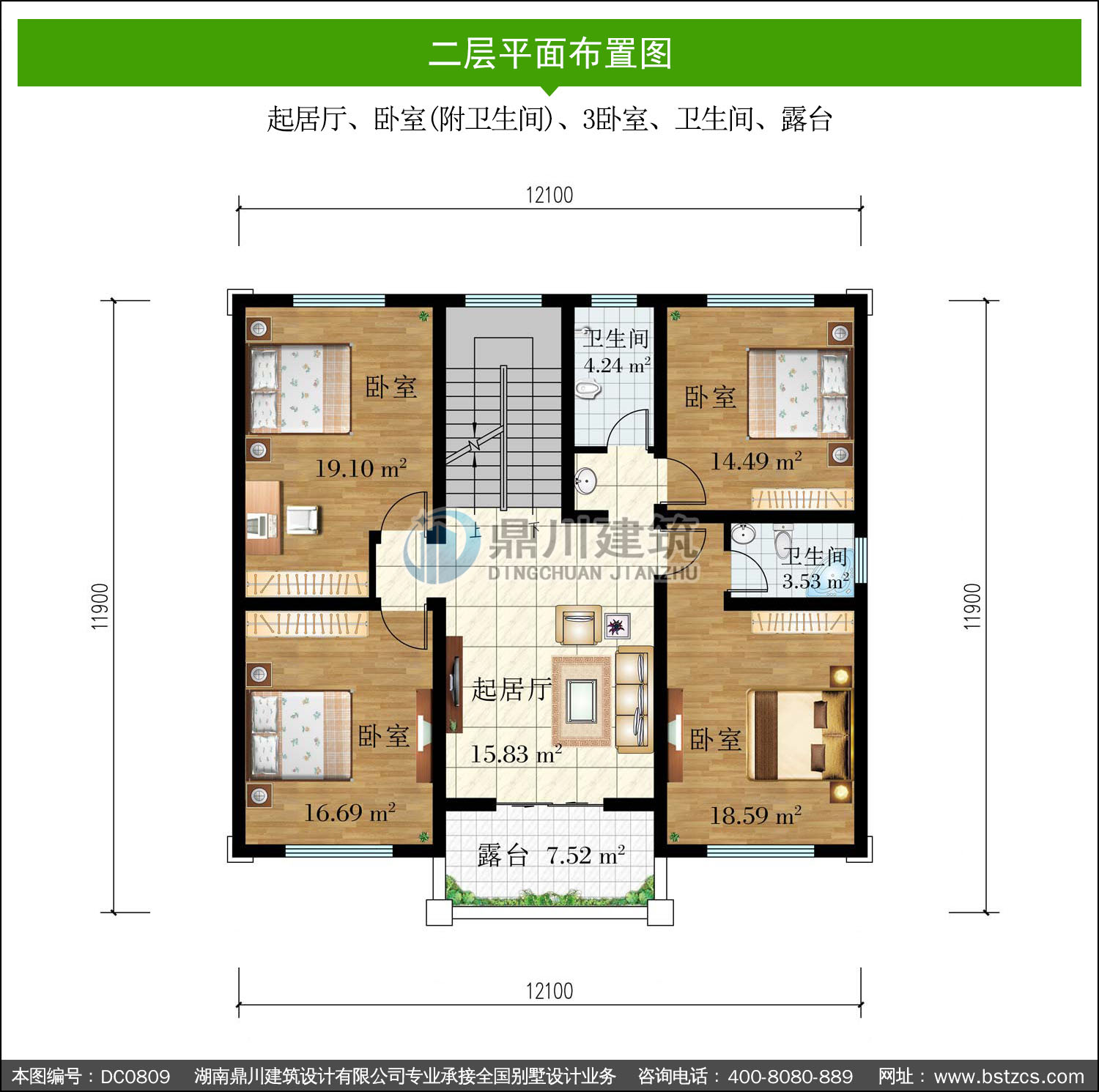 二層帶陽臺復式別墅施工圖紙及效果圖_新農村自建房設計,鼎川建