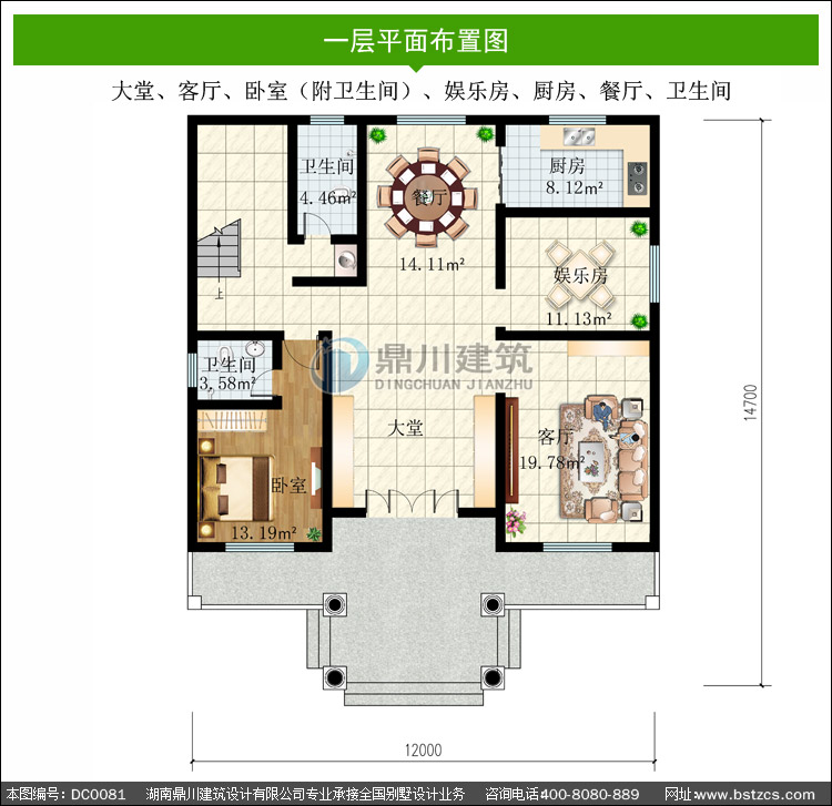 | 一 層: | 大堂、客廳、臥室(附衛(wèi)生間)、娛樂房、廚房、餐廳、衛(wèi)生間 | |||