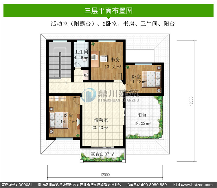 | 三 層: | 活動室(附露臺)、2臥室、書房、衛(wèi)生間、陽臺 | |||