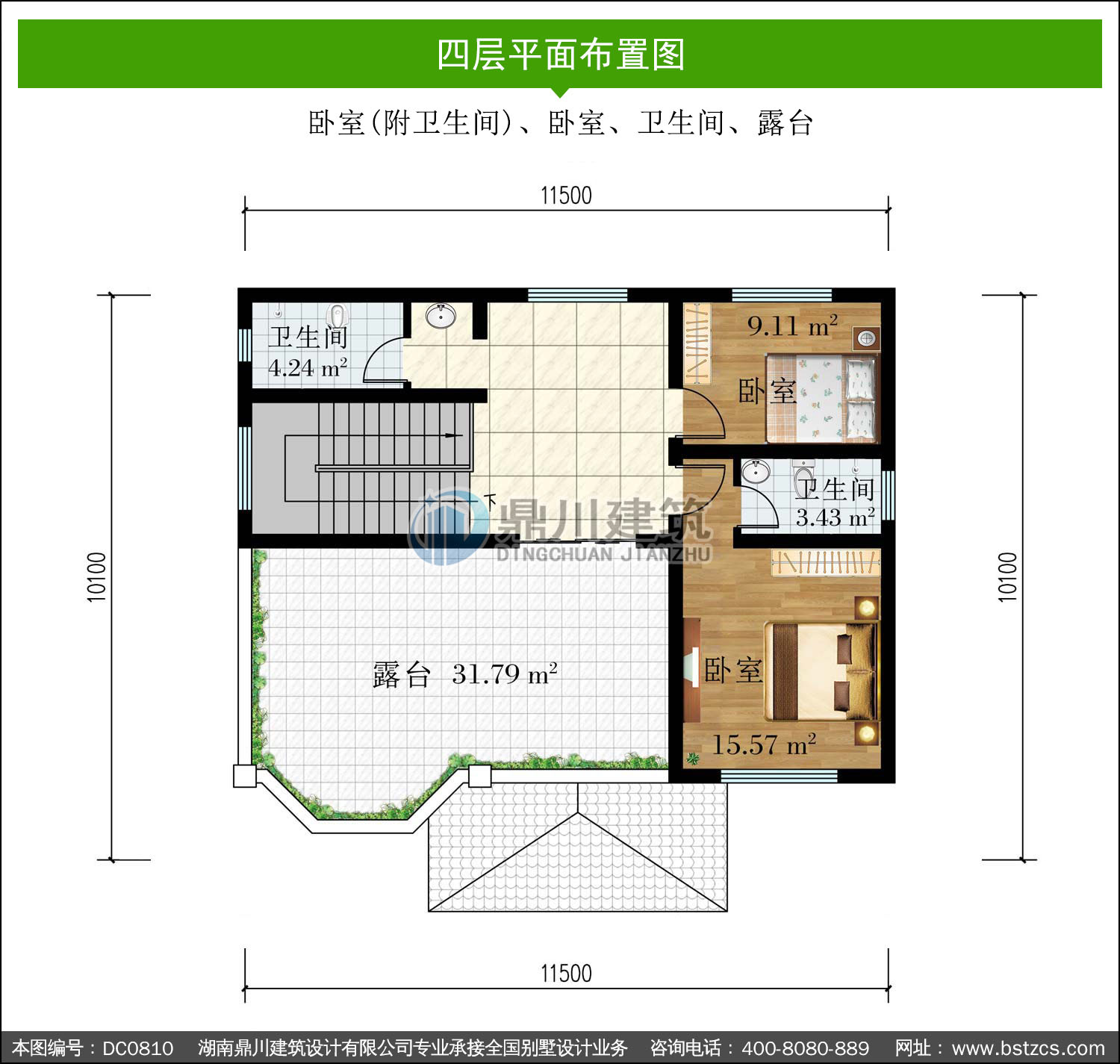 | 四 層: | 臥室(附衛生間)、臥室、衛生間、露臺 | |||