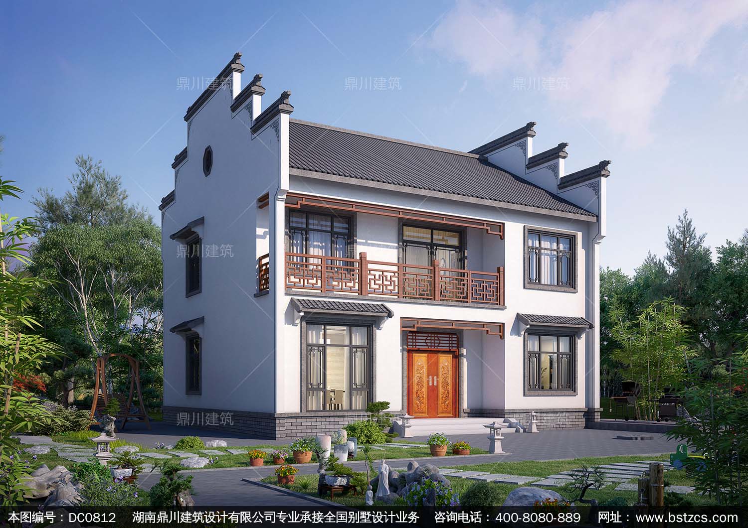 農村二層中式別墅圖紙施工圖及效果圖_自建房屋設計圖紙,鼎川建