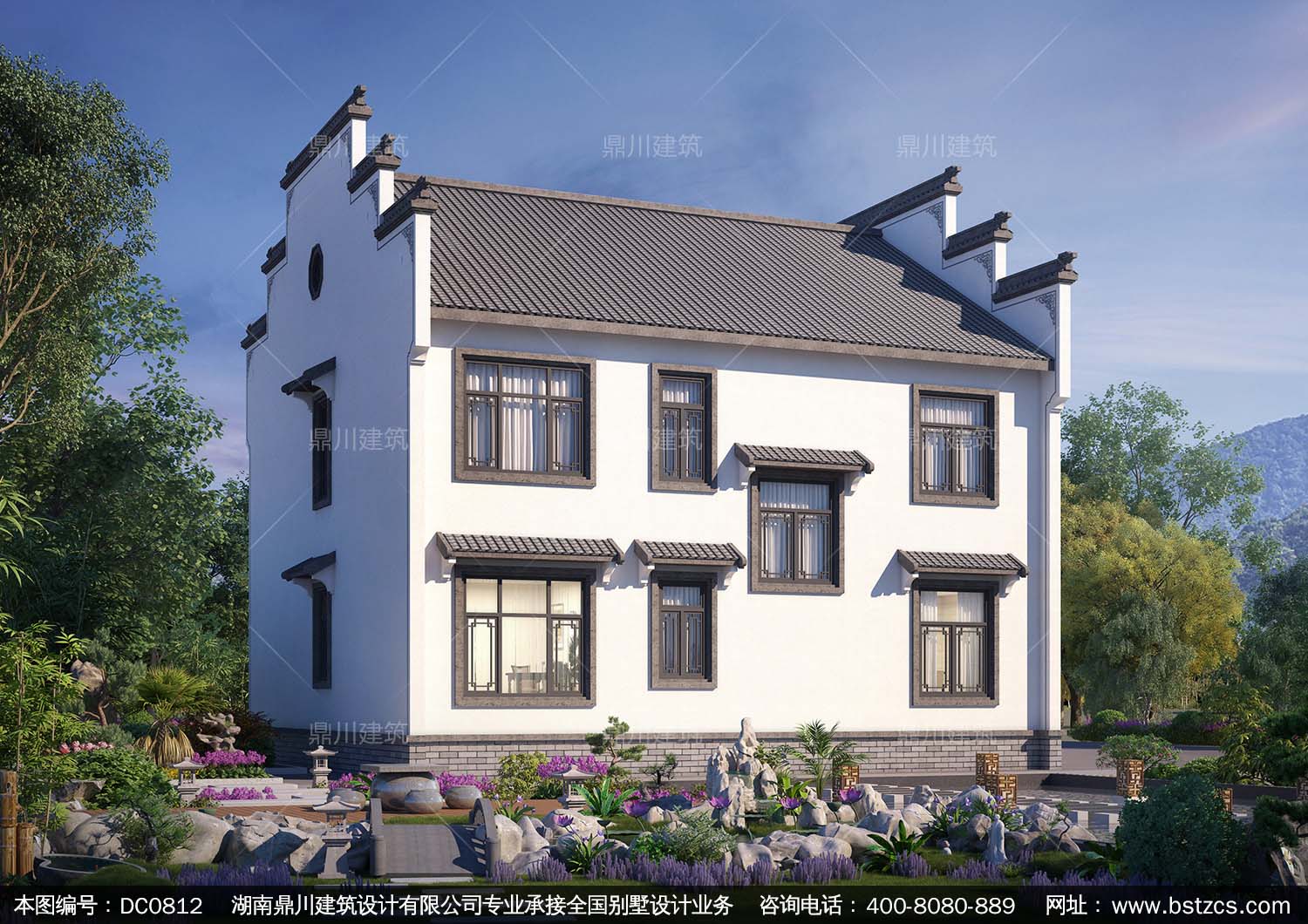 二層新中式別墅施工圖紙及效果圖_新農村自建房設計圖,鼎川建筑