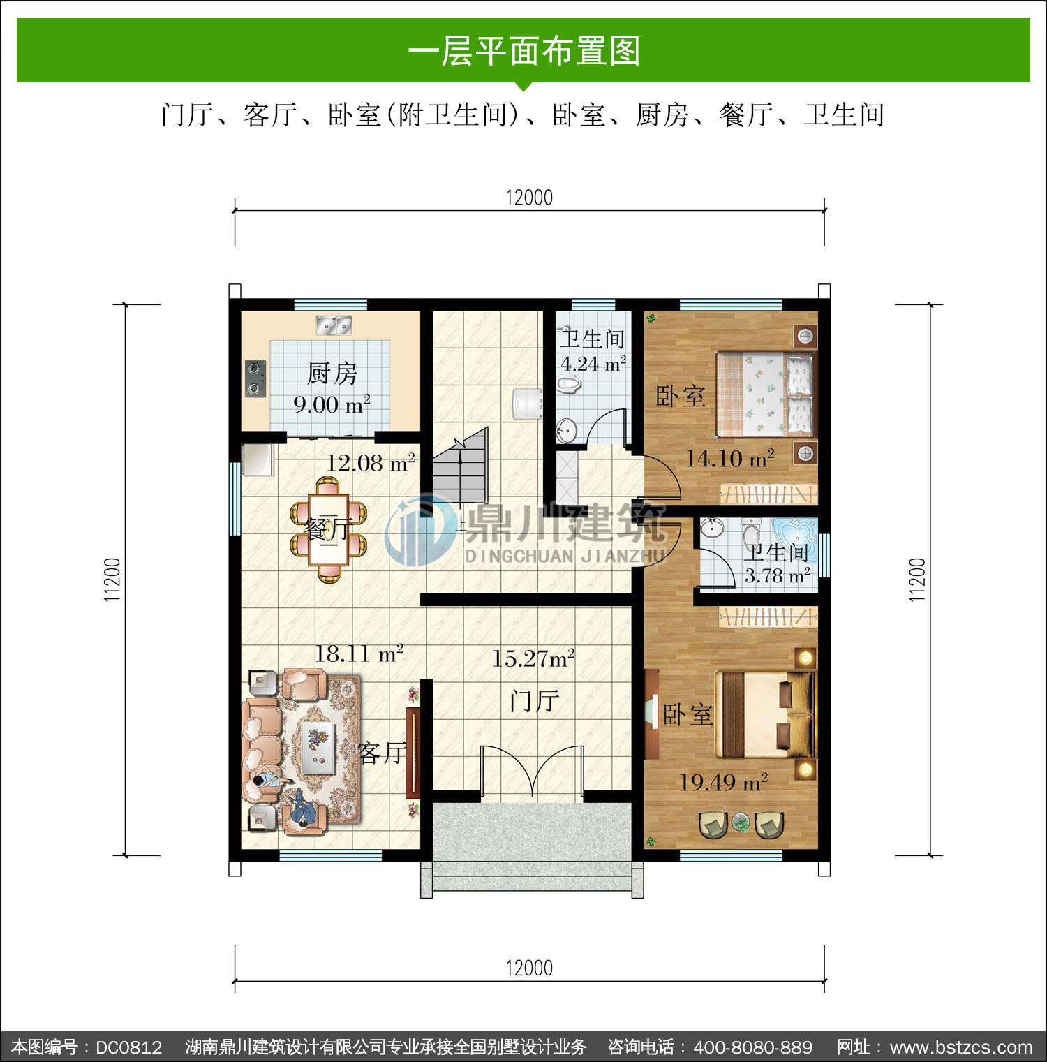 中式二層自建房屋全套施工圖紙及效果圖_農村兩層房子設計,鼎川建筑