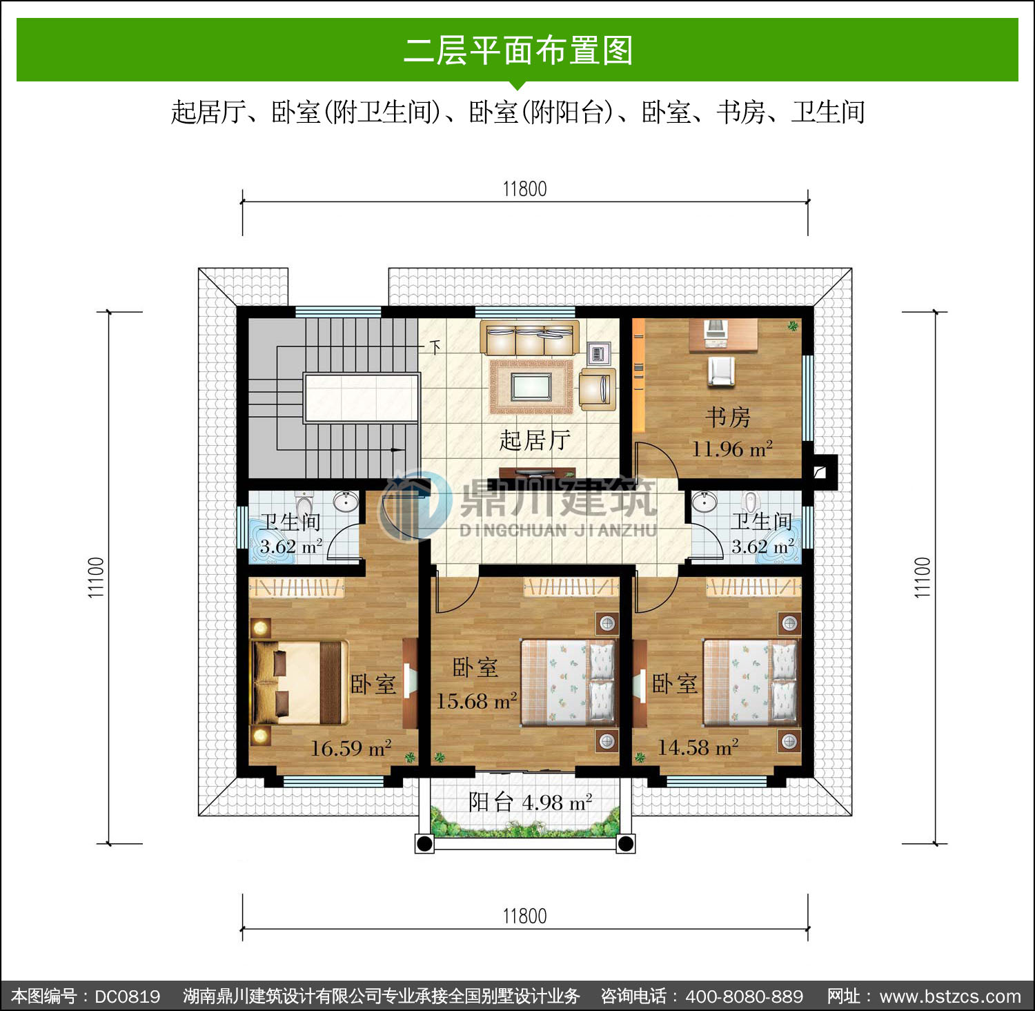 二層簡約帶陽臺小別墅效果圖及施工圖紙_農村自建房設計,鼎川建