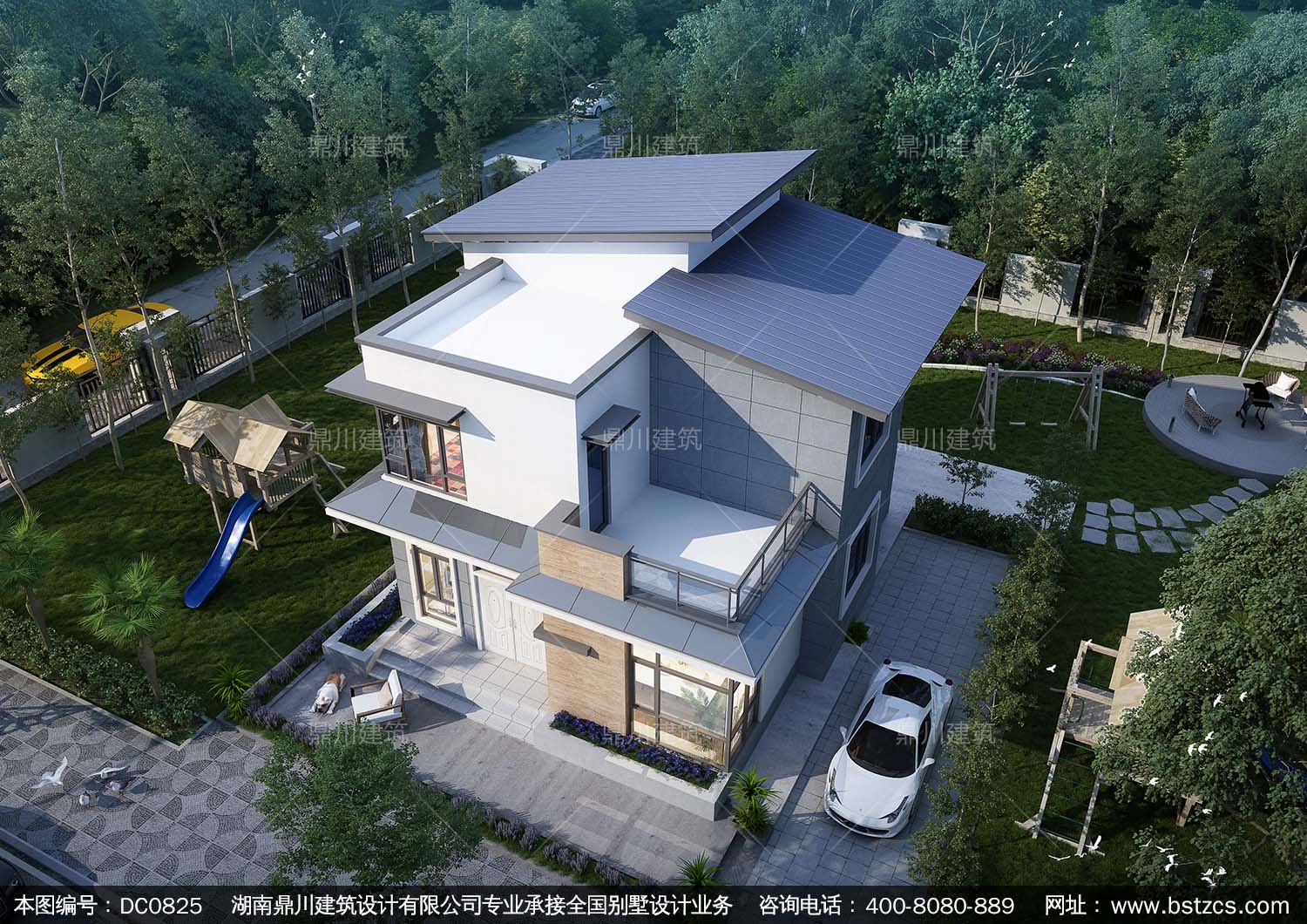 現代二層平屋頂別墅施工圖及效果圖_新農村自建別墅設計,鼎川建