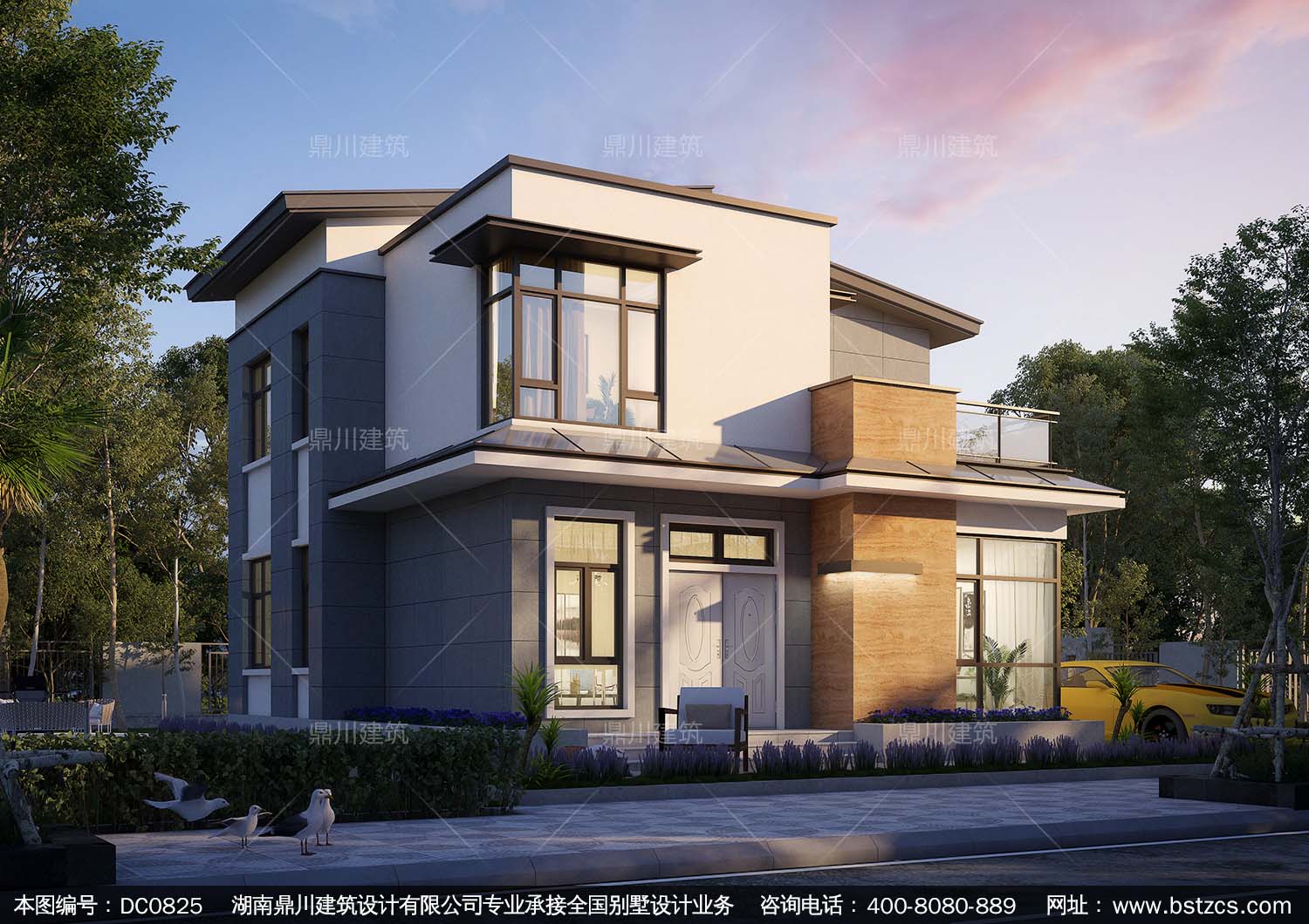 現代簡約二層小別墅施工圖紙及效果圖_新農村自建別墅設計,鼎川建筑