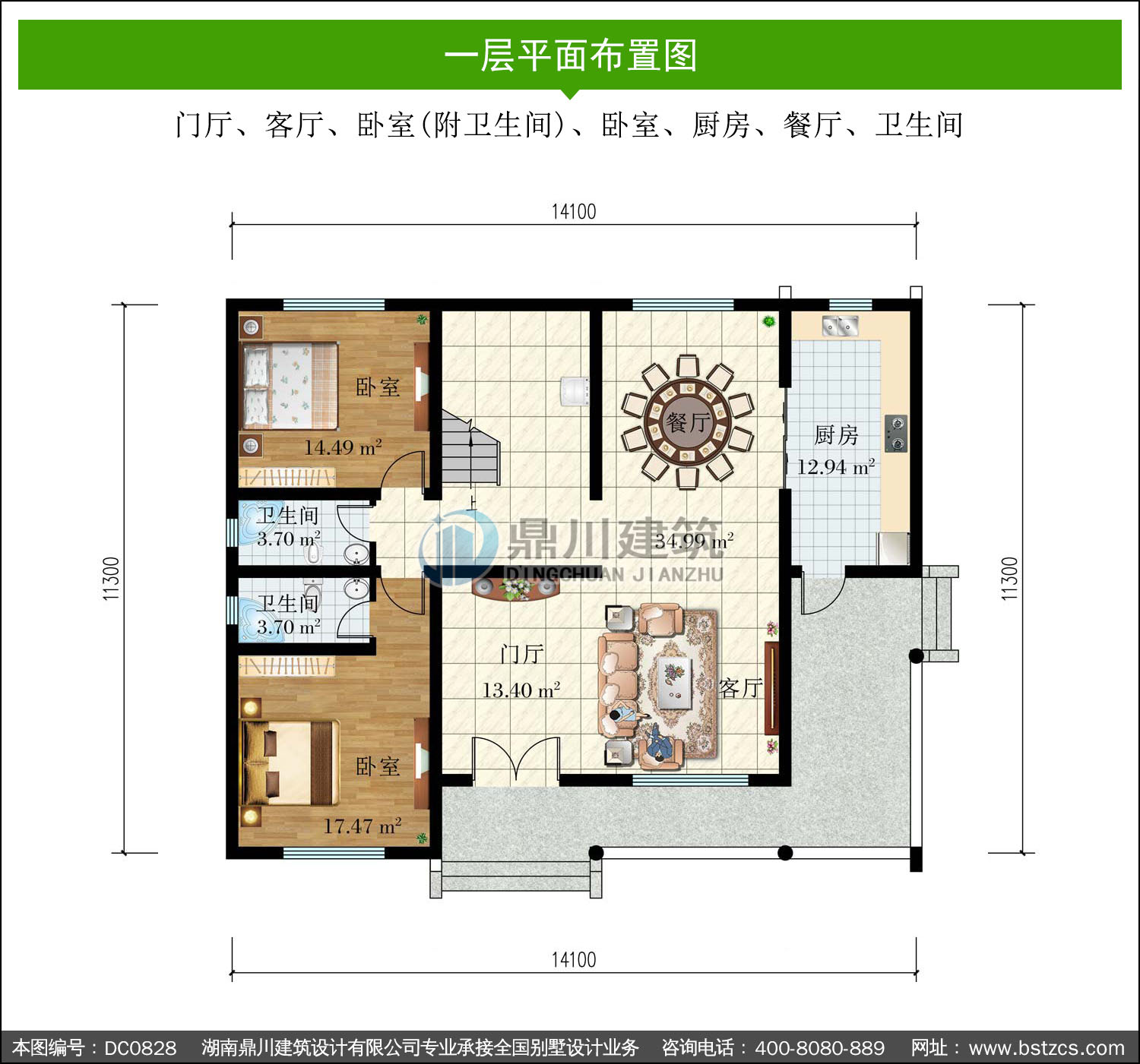 | 開間: 14.1米 | 進深: 11.3米 | 占地面積: 165.48平方米 | 建筑面積: 296.32平方米 |