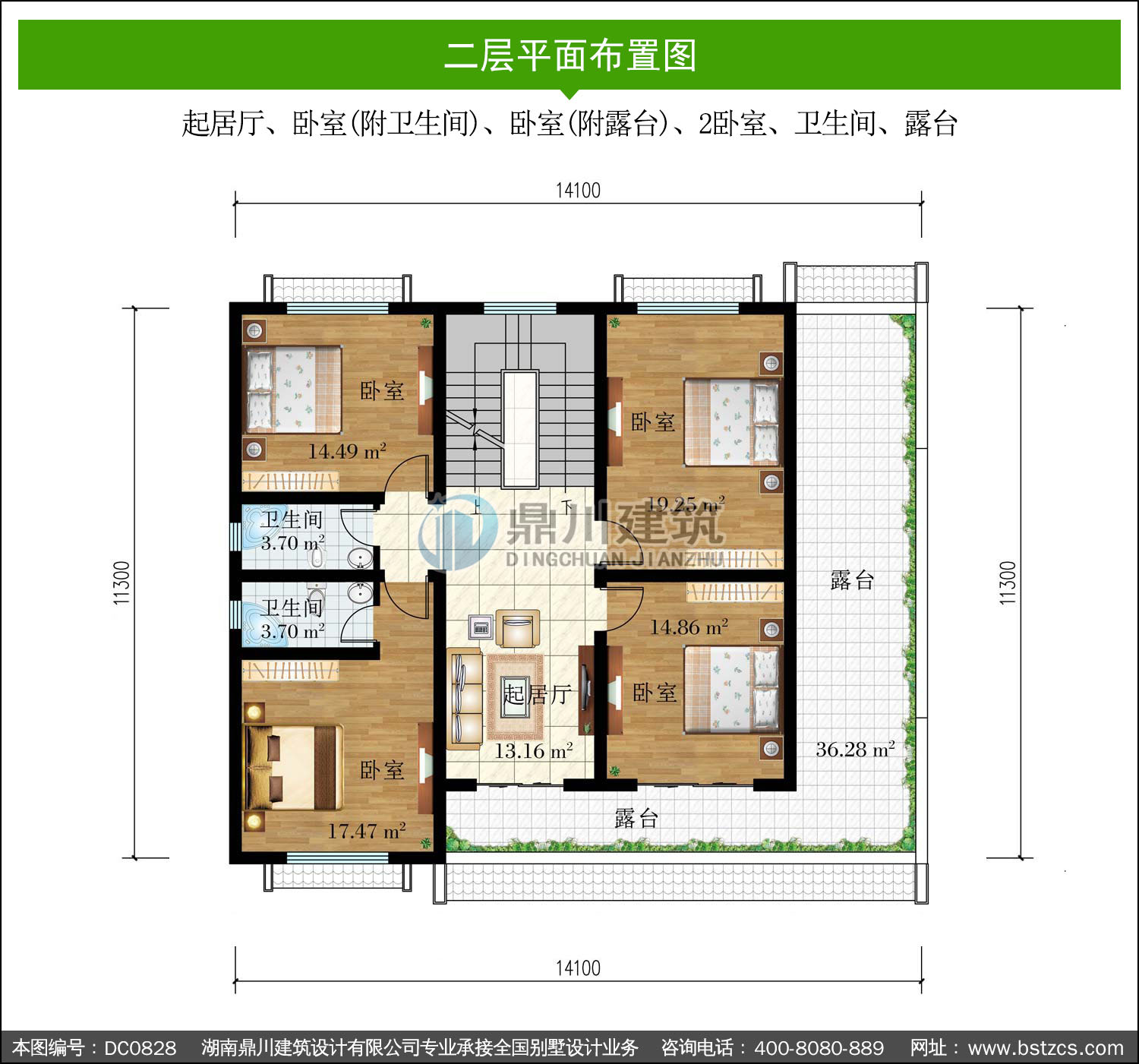 大氣二層新中式帶露臺別墅施工圖紙_新農村自建房設計,鼎川建筑