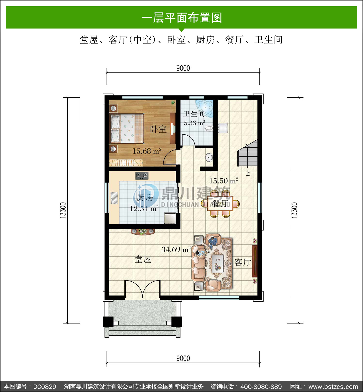 | 一 層: | 堂屋、客廳(中空)、臥室、廚房、餐廳、衛(wèi)生間 | |||