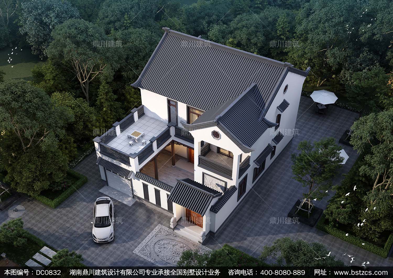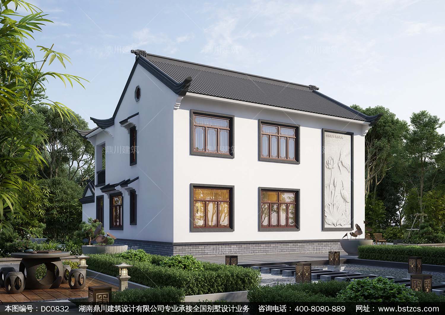 農村二層帶院子新中式房屋設計圖紙_兩層自建房設計,鼎川建筑